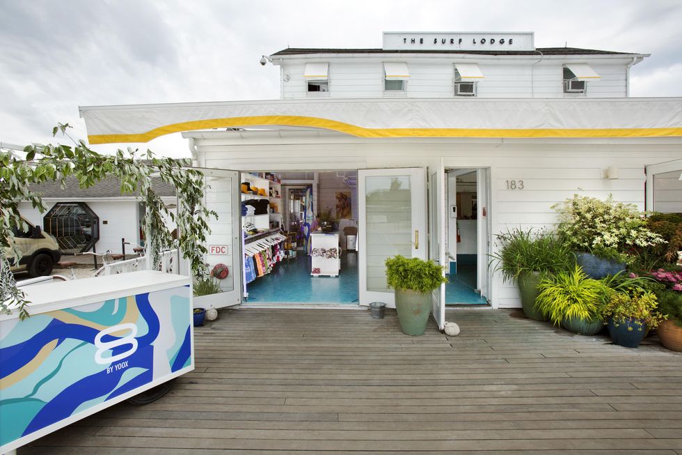Adding to the attraction, The Surf Lodge invited YOOX to create a shoppable experience inside the front of their hotel, featuring products from the e-tailer’s private fashion label, 8 by YOOX. This marked the Milan-based company’s Montauk debut, taking over for a week earlier in July to sell breezy surfing essentials (maxi dresses, board shorts, palm tree-printed knits).