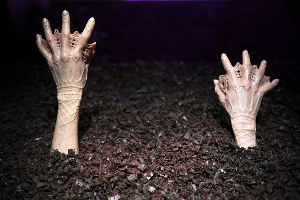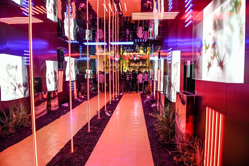 Celebrities like Katie Holmes, Olivia Culpo, and the Queer Eye guys drank tequila cocktails while taking in detachable spinal cords and nautilus shell-shaped high heels implanted in ankles. Theatrical director Michael Count placed models inside glass boxes filled with dirt, so that only their heads were visible. There was a "pump room" that featured a beating heart. Edgar Allen Poe could never!