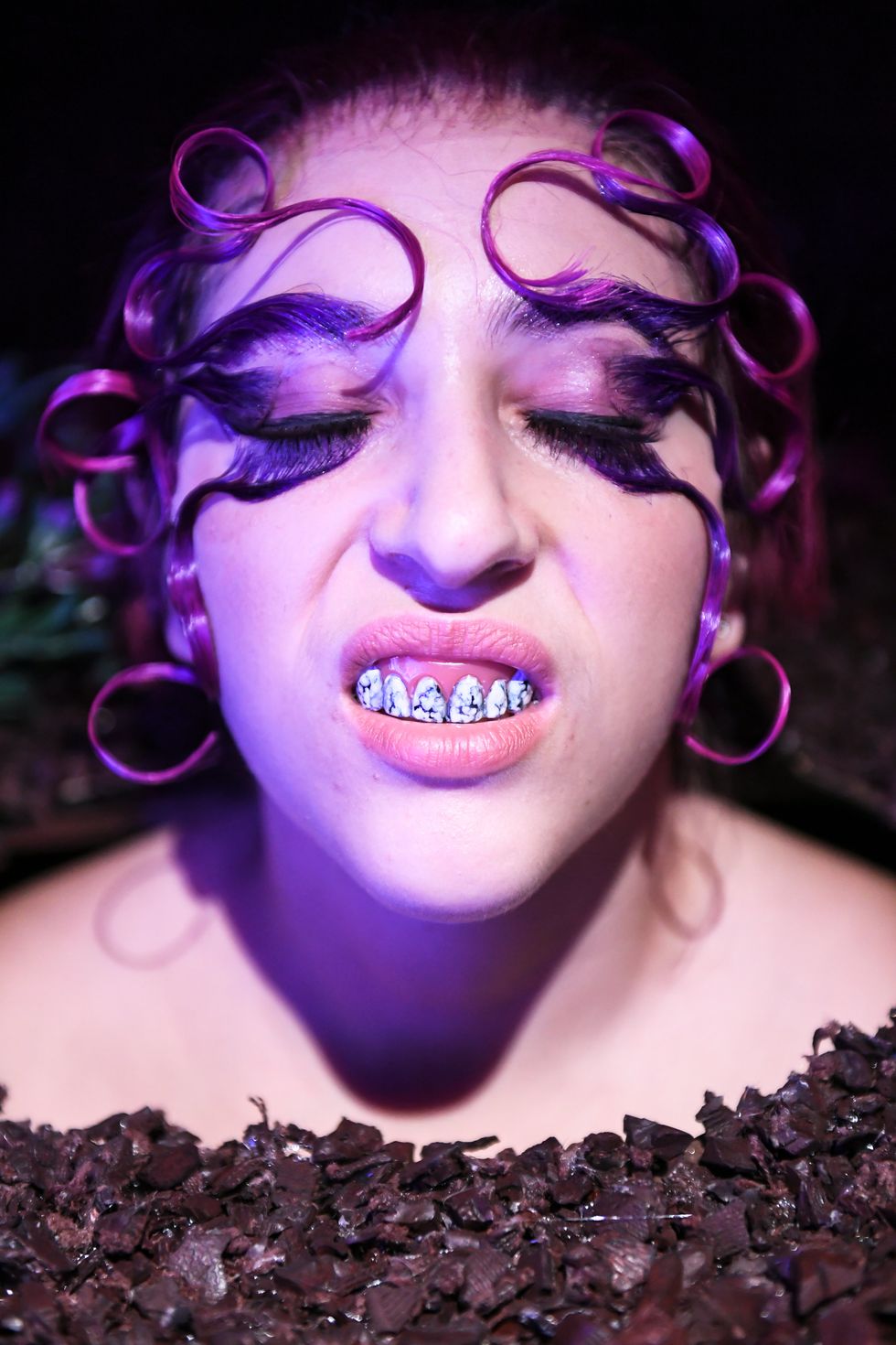 Venerable makeup artist Isamaya Ffrench was a major contributor, and even wore her own set of modified teeth to the event. "I actually used to be a dental nurse many years ago, and there is something quite creepy about teeth in general," she said. "They're associated with death and associated with dreams, and so they're already symbolic."