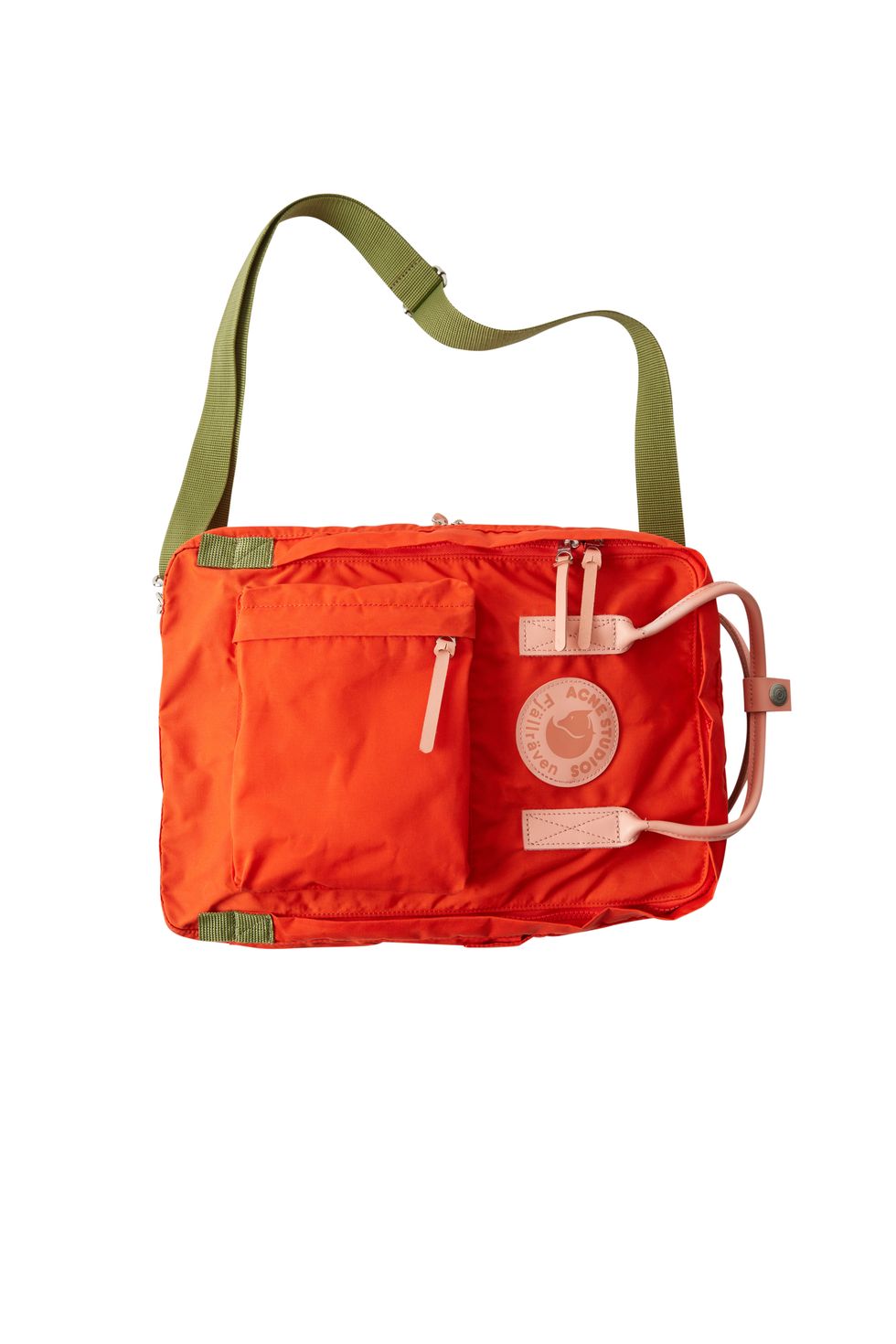 After dissecting a selection of Fjällräven styles to better understand their construction and functional features, Johansson redesigned technical trousers as convertible pants with a zipper inlet and transformed the Kånken backpack into a messenger bag and mini clutch. Details like faux fur trims, reflective patches, and blush pink paneling mirror structural changes like oversized pockets and new internal compartments.