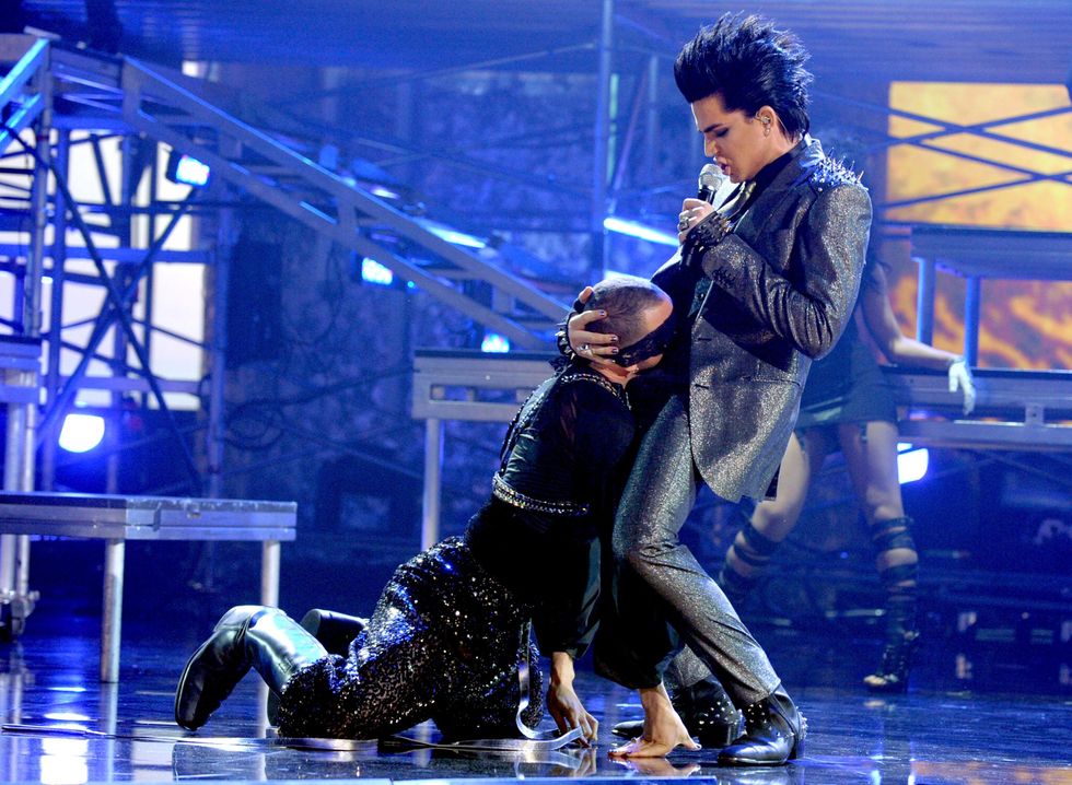 That's the role Lambert's 2009 performance played for me, anyway. If you haven't seen it, allow me the pleasure of setting the scene for you. It's the year after Proposition 8, the ordinance that banned gay marriage in California, was passed. Adam Lambert takes the AMAs stage, sparsely lit and otherwise shrouded in darkness.