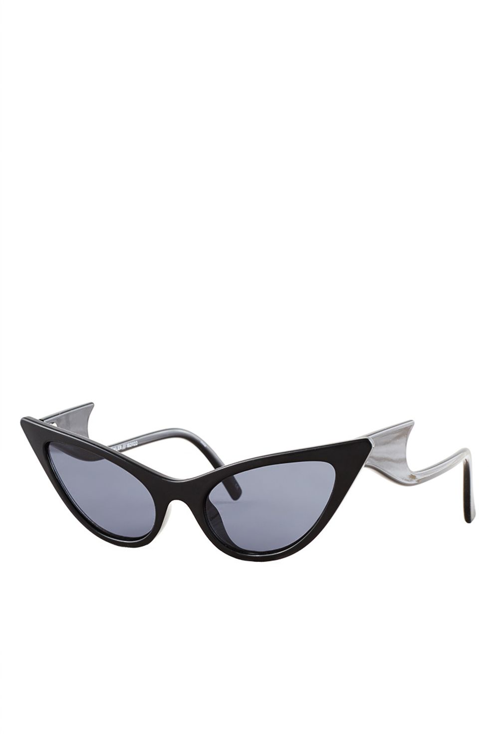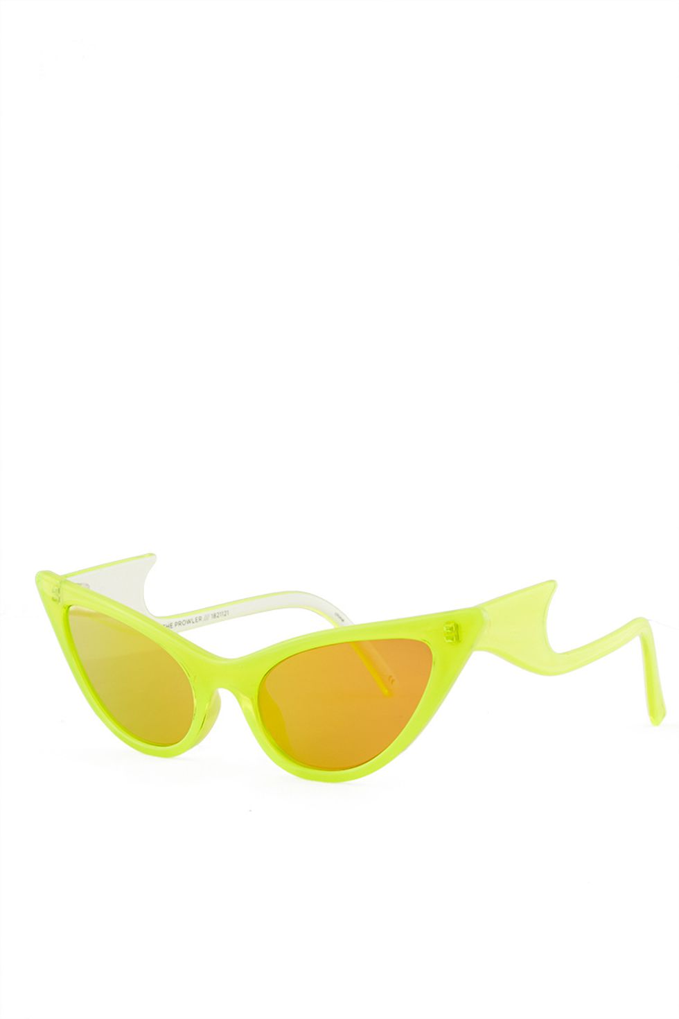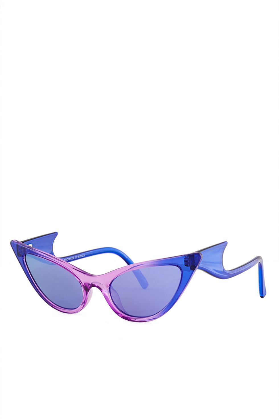 Sold exclusively at Opening Ceremony, "The Prowler" offers a similar retro shape, but with added bat-wing handles that really scream, "I have a thousand dollars in my purse and a knife in my back pocket." Selman and Le Specs designed the plastic frames in bold, neon hues with matching mirror lenses in hombre cobalt violet, neon yellow and black.