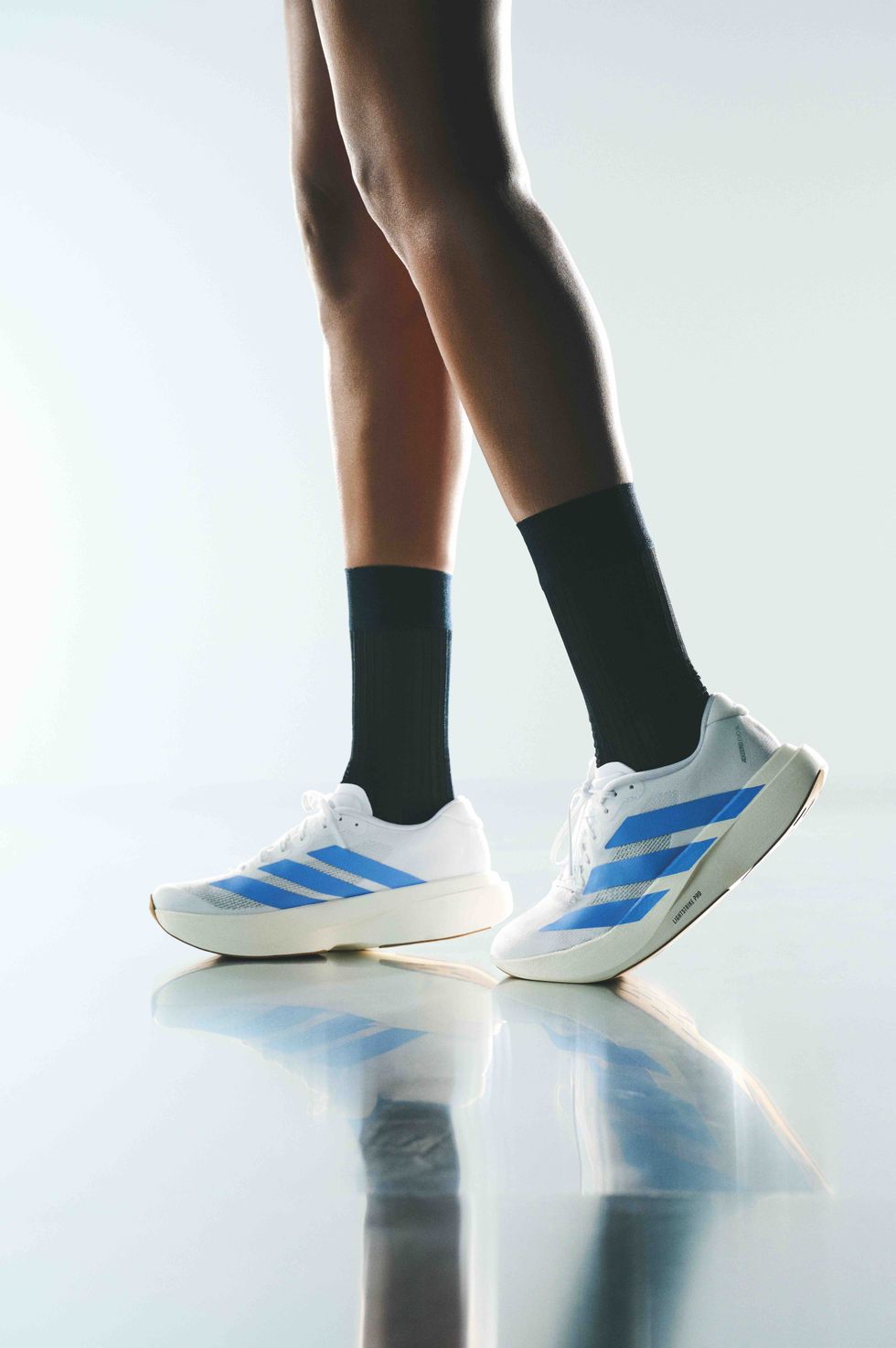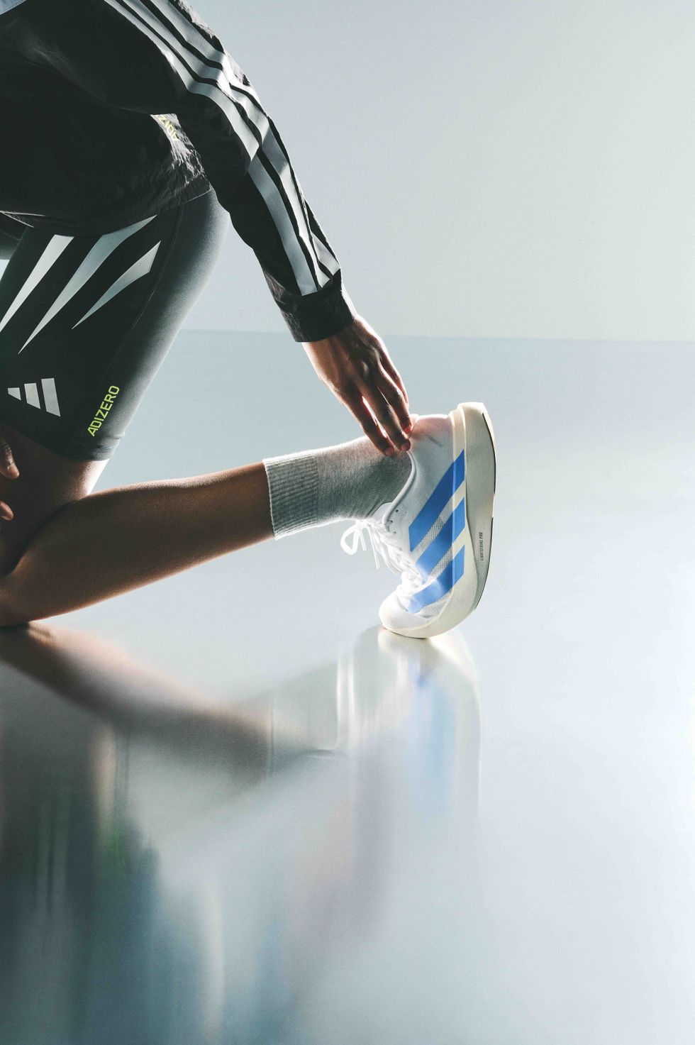 To bring it all to life, the campaign shows both shots of runners in motion in high-performance gear paired with the Adizero Evo SL’s, as well as more editorial scenes with models in stylish athleisure pieces. Clearly, the shoes can turn heads whether running in them or not.
