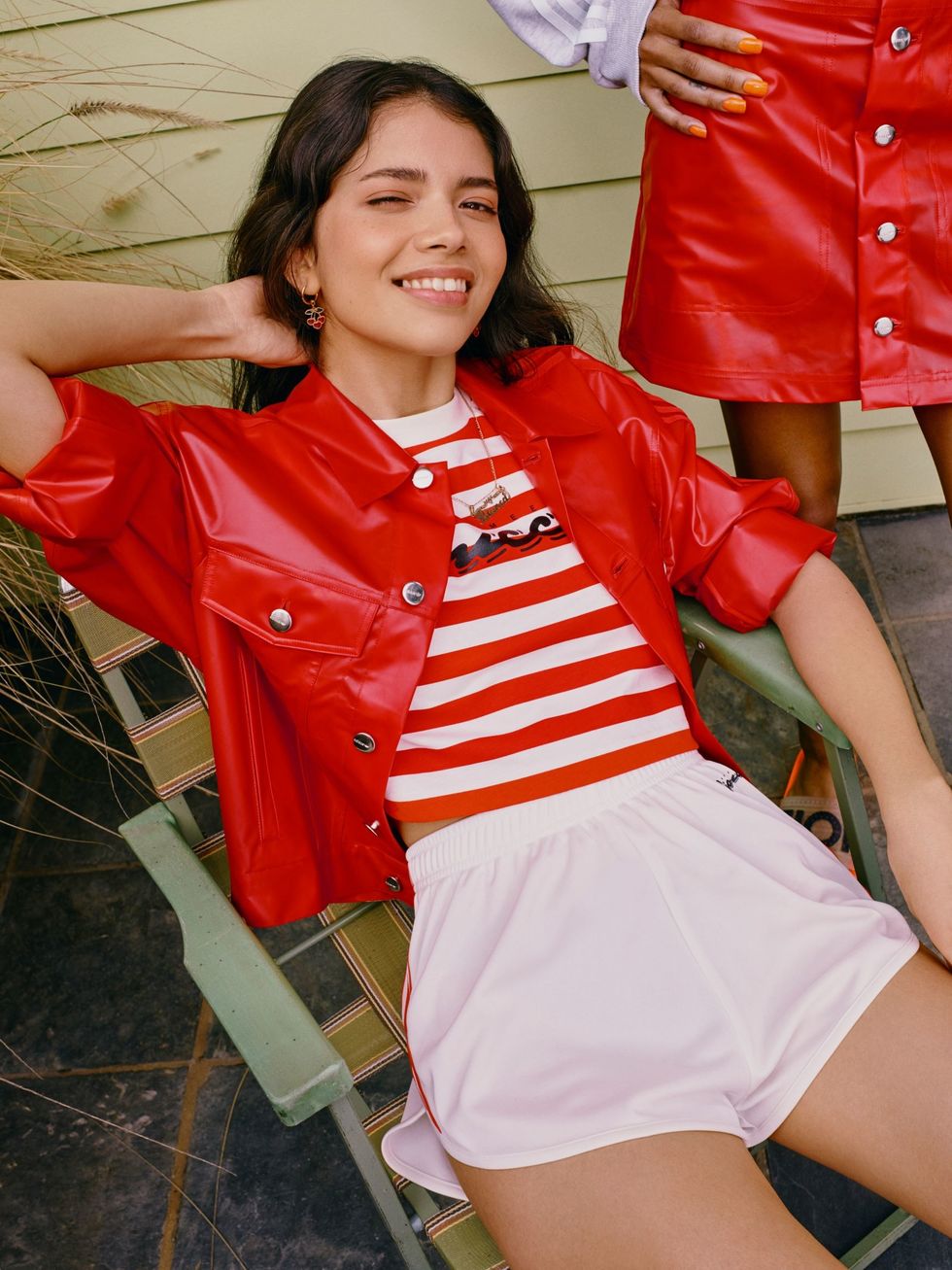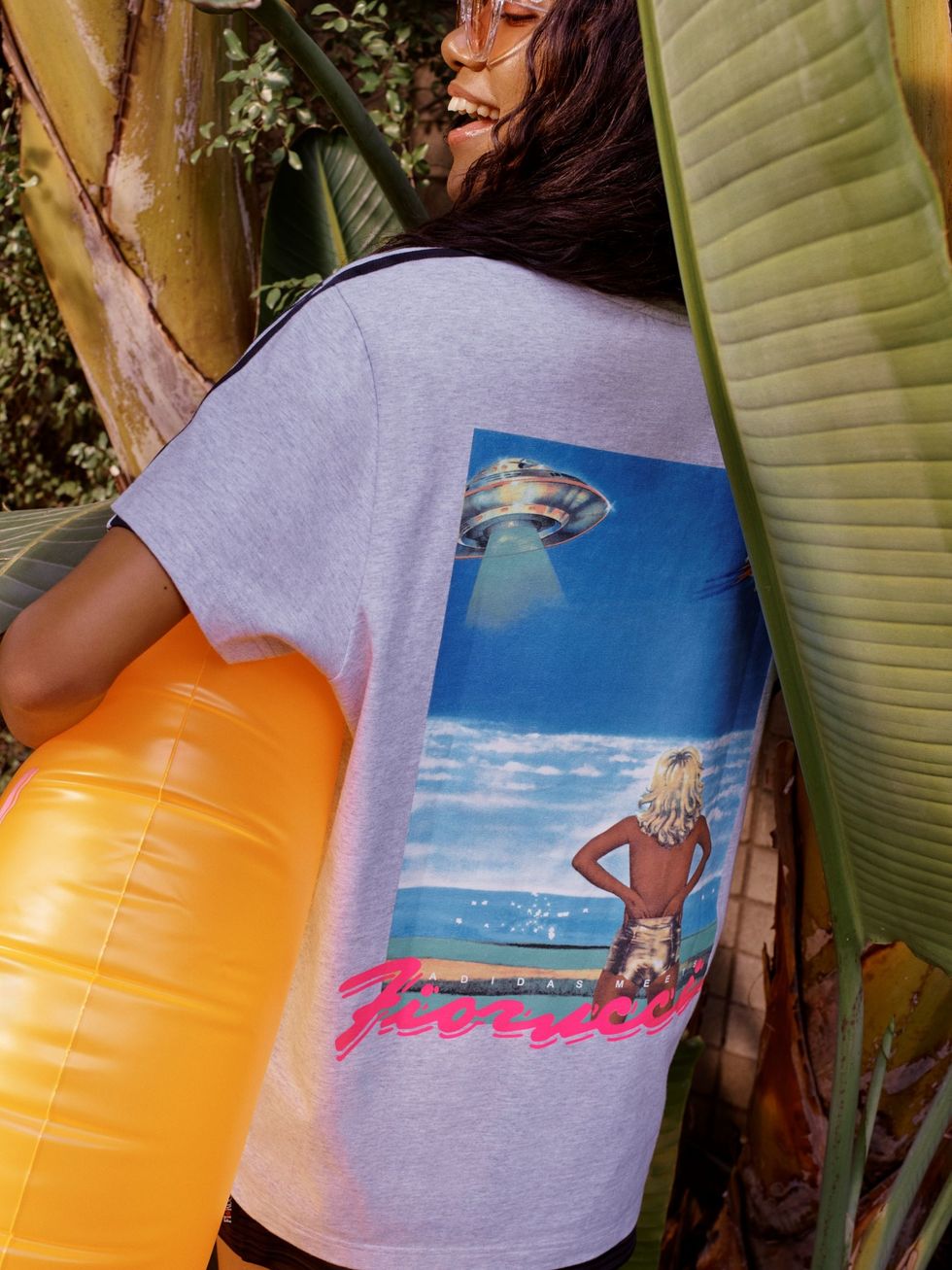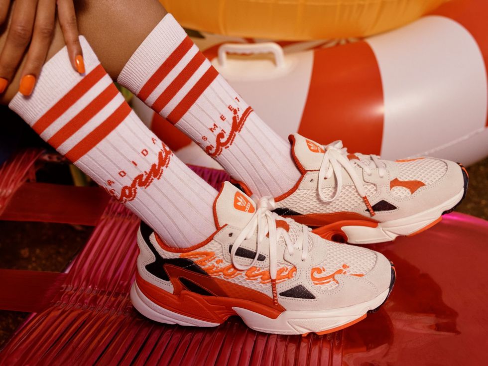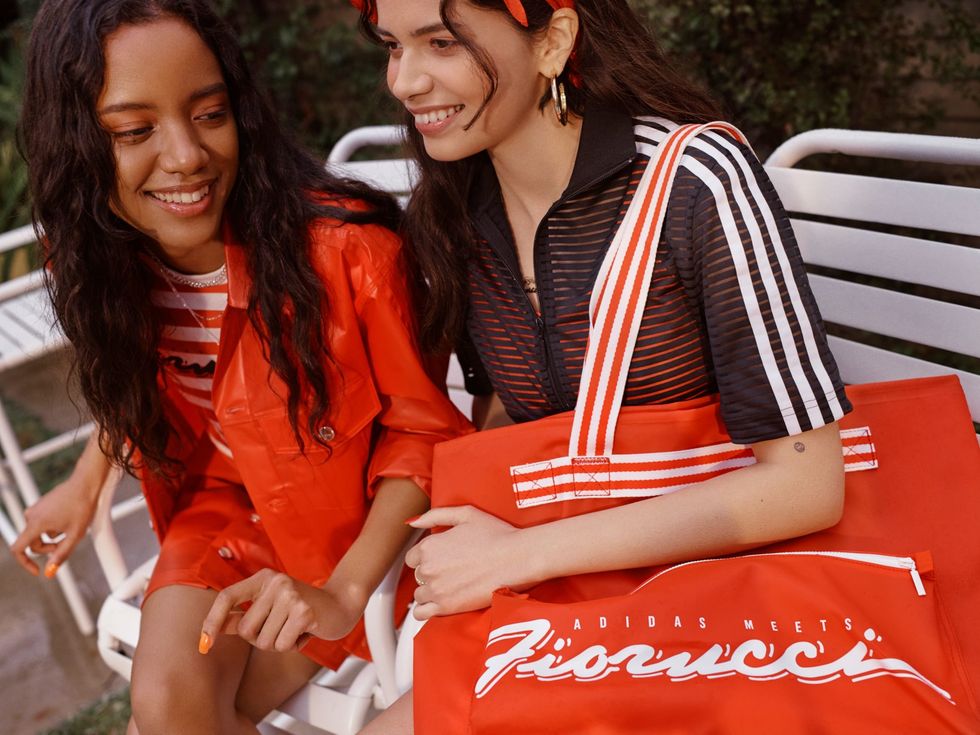 The capsule stays true to Fiorucci's iconic '80s Euro-glam aesthetic with splashy graphics in a bold citrus-kissed orange rendered in Adidas' streamlined modern silhouettes. The collection features sexy one piece bathing suits, slick slides, beach totes, and a chunky dad sneaker that will have all of the cabana boys dying to know where you copped. It's a collection that peers over a pair of sunglasses and proudly proclaims, "I'm on my second six-month vacation," before casually sipping a Mai Tai by the pool.