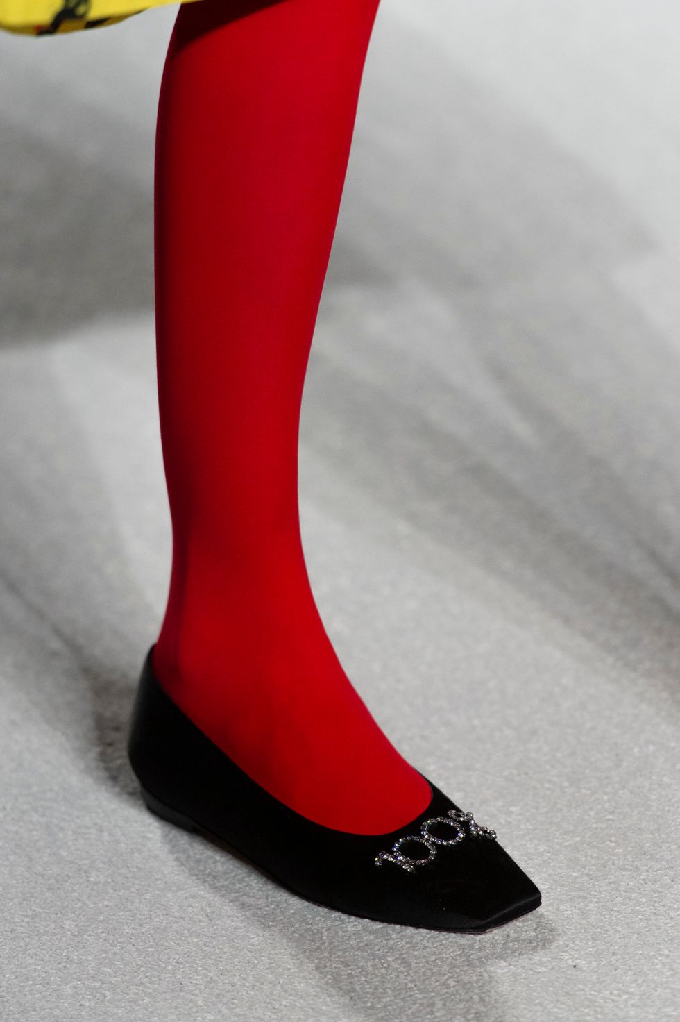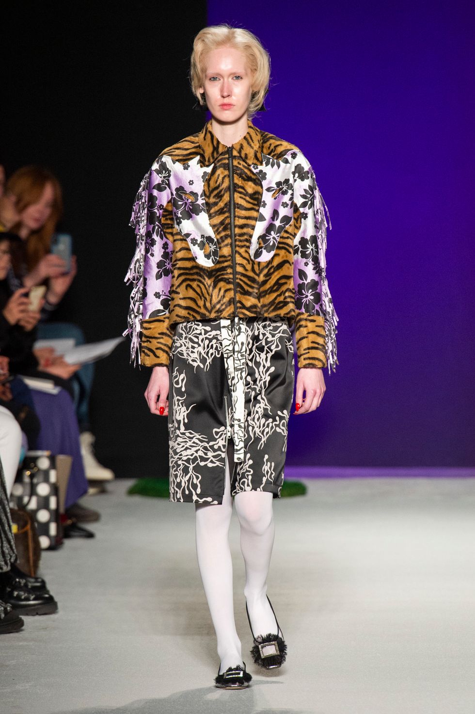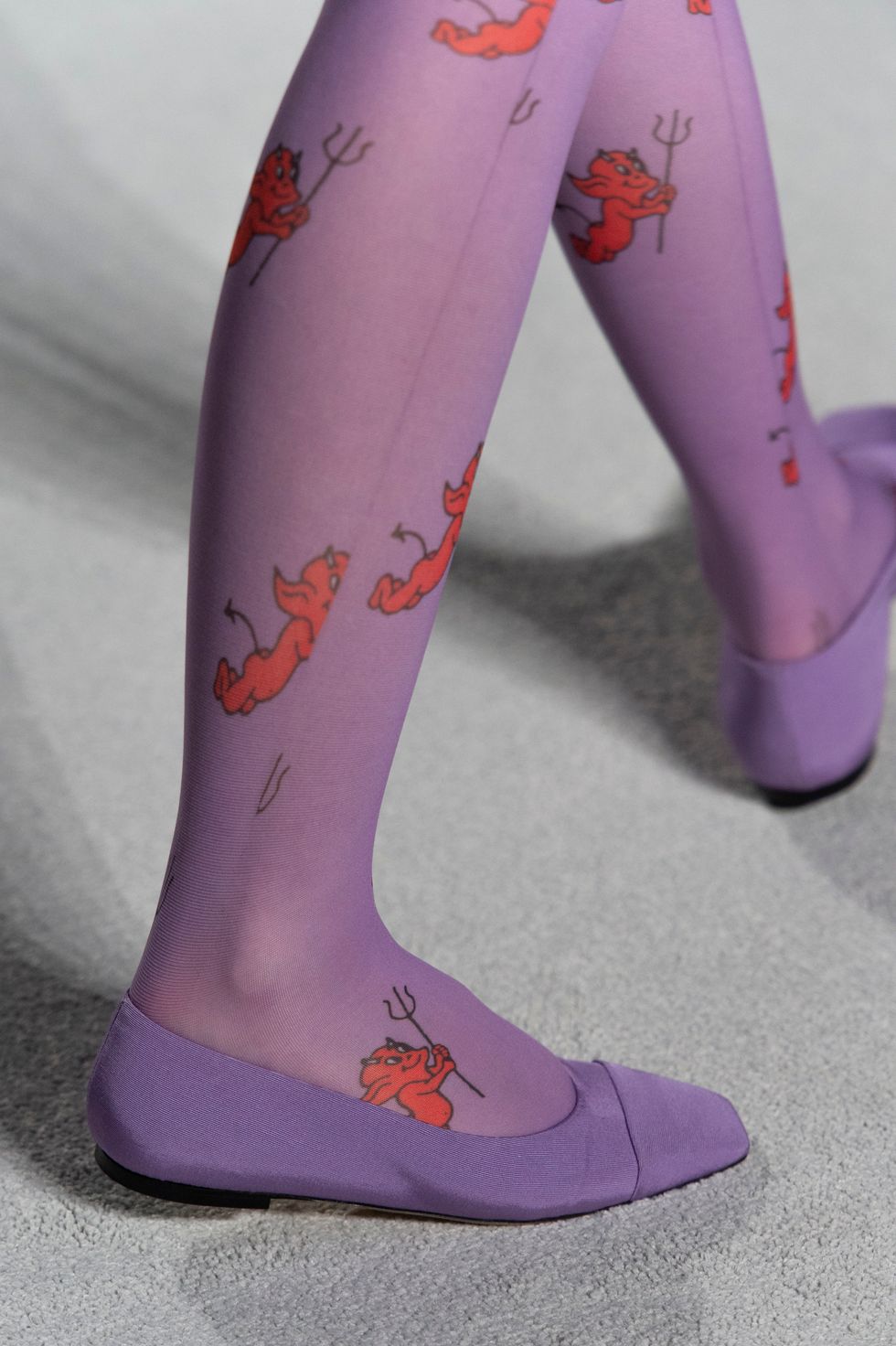 Tights can sometimes feel like just a necessity for fall and winter dressing. But in the case of Ashley Williams, the designer made them more of an active statement. In shades white wine primary red, as well as lilac with little devils printed on them, tights never looked more covetable.