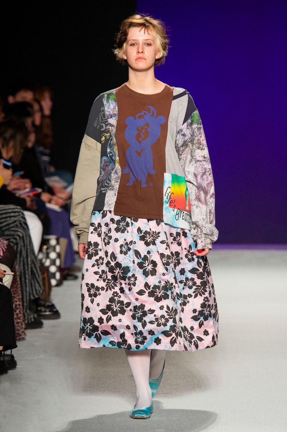 London fashion week may have just kicked off, but it's already been a day full of magical moments. Designer Ashley Williams' collection is already sure to be a highlight — with fun animal print dresses, tie dye pants and fun details such as bows. Model Adwoa Aboah opened the show wearing a black fleece pullover covered in sperm print. Here's everything else you need to know about the show.