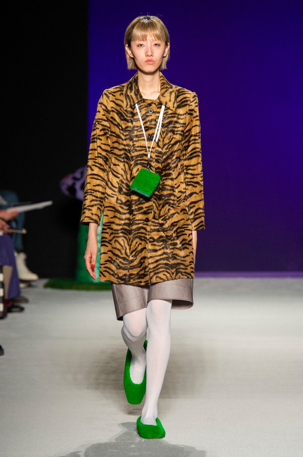 Zebra stripes and leopard spots were seen on dresses and coats as well as skirts and tops. These prints were often mixed together for a playful aesthetic.