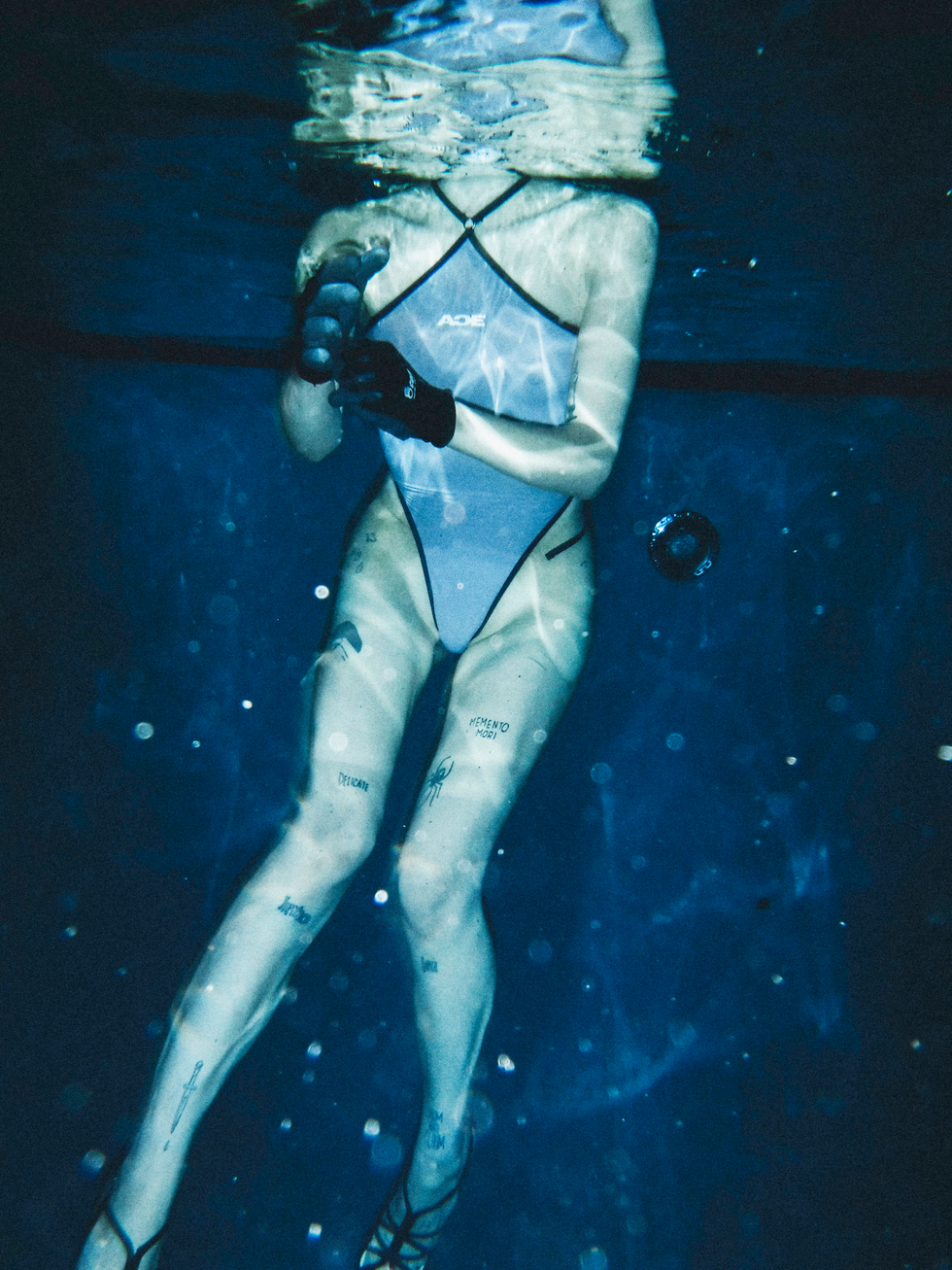 Now available through ACE’s online store in three colorways — seamoss, bruised and bluestar — the “Aerosuit II” was designed to form a “second skin and feel almost naked, but secure and safe,” Aroff details. He highlights its straps on the back that naturally accentuate curves and gushes about the thong detail, specifically. “A little whale tail never hurt anybody. I love a good whale tail, I think we all do.”