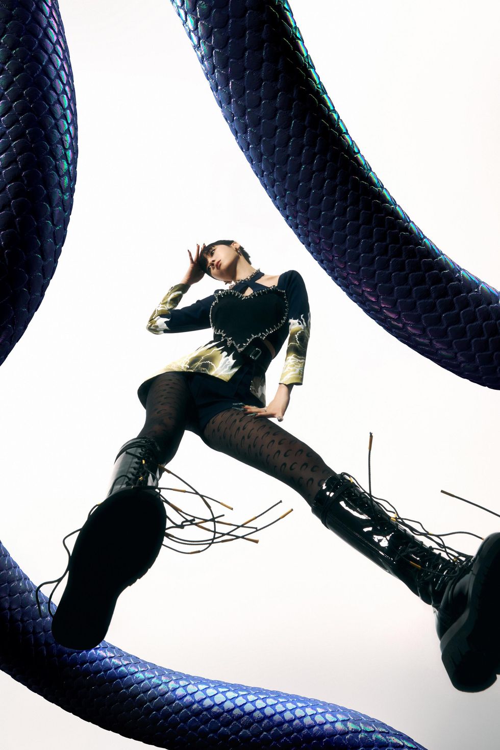 "For each single, we mostly showcase a powerful image," NINGNING says. "It's not girly, but it's feminine in an aespa way." Their style, WINTER adds, is "feminine, but it doesn't make us look delicate. It's girl power. [It's] powerful." That is the aespa ethos: They are powerful and feminine and exist outside of the binary.
