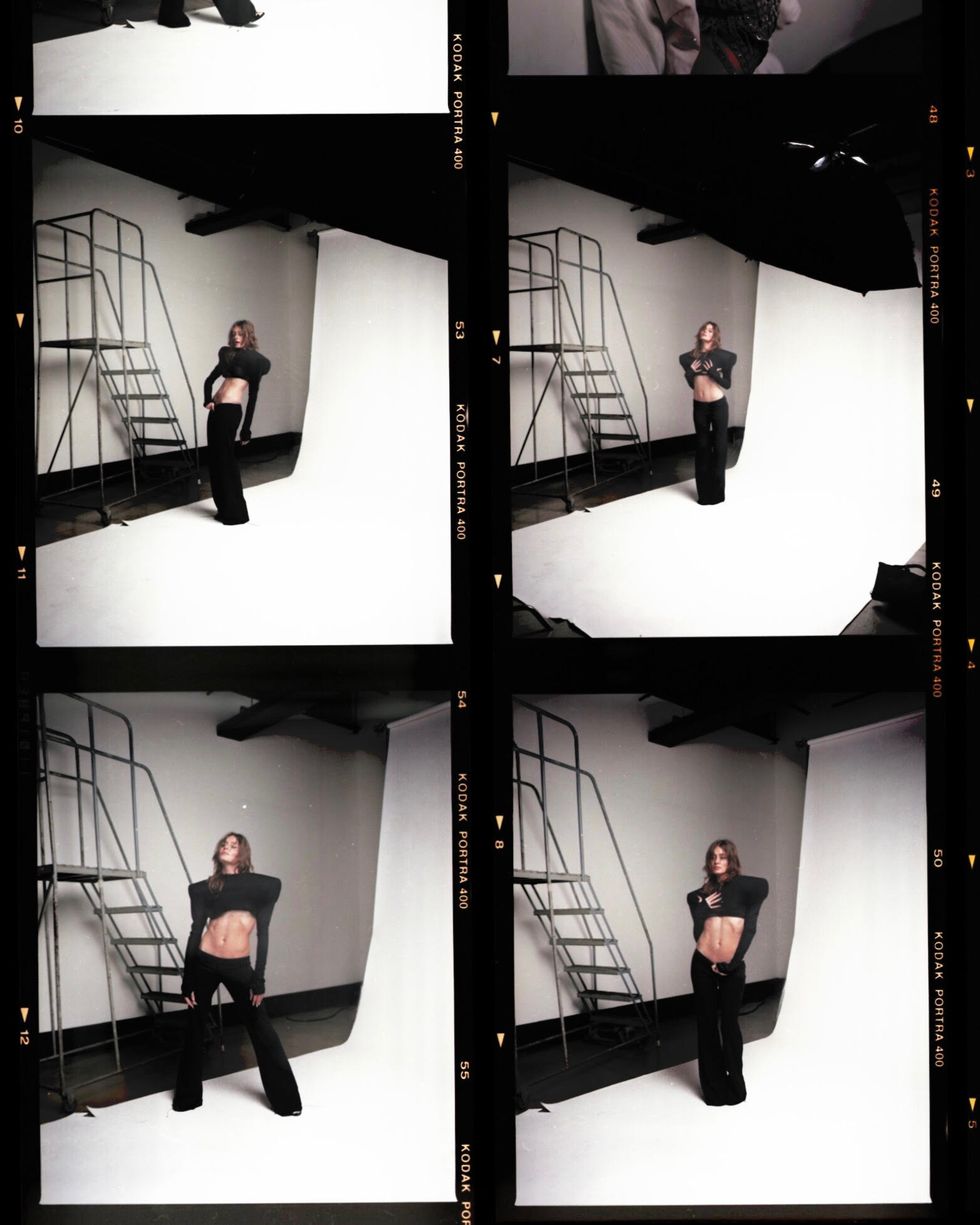 The visualizer was BTS from a press shoot that I consolidated into a performance piece. I’m wearing a custom Spring 2024 shoulder padded top from a brand based in Paris called Pressiat and Y2K low-rise black trousers from my sister’s closet. The fashion and aesthetic in this upcoming project has brutalist and industrial undertones, inspired by some of my favorite designer’s like Rick Owens and artists like Grace Jones. I would also like to credit my photographer Sophia Liv Maguire, videographer Ken Campo and makeup artist Jazzmine Oddie for being an essential part of these visuals.