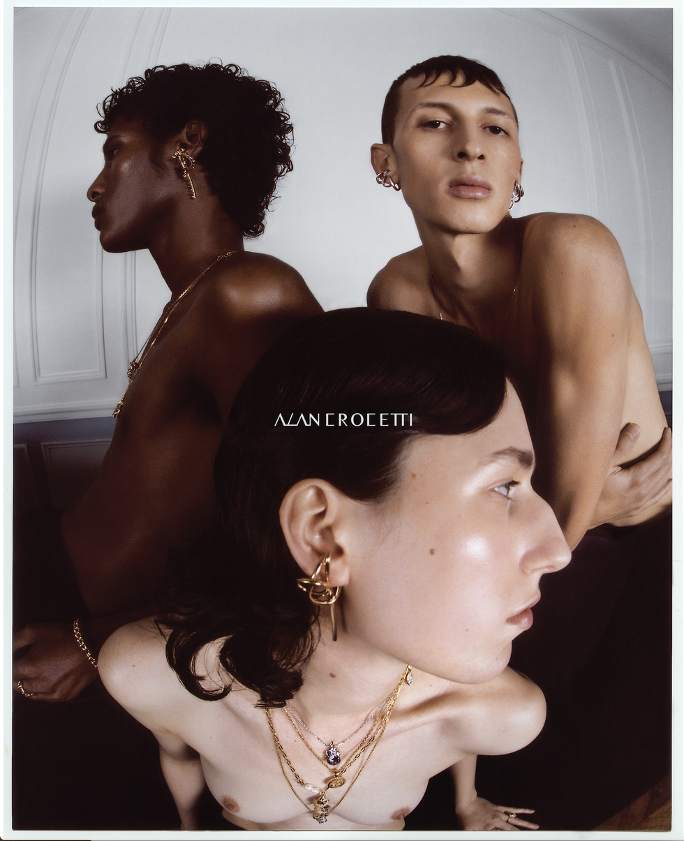 These biblical concepts took form in an updated version of the brand's signature ear cuffs, a pair of "Gem in Heat" earrings and necklaces representing fire and "carnal sin," and a group of "Nachcash" pieces inspired by the serpent in the Garden of Eden, a paradox of sex and corruption.