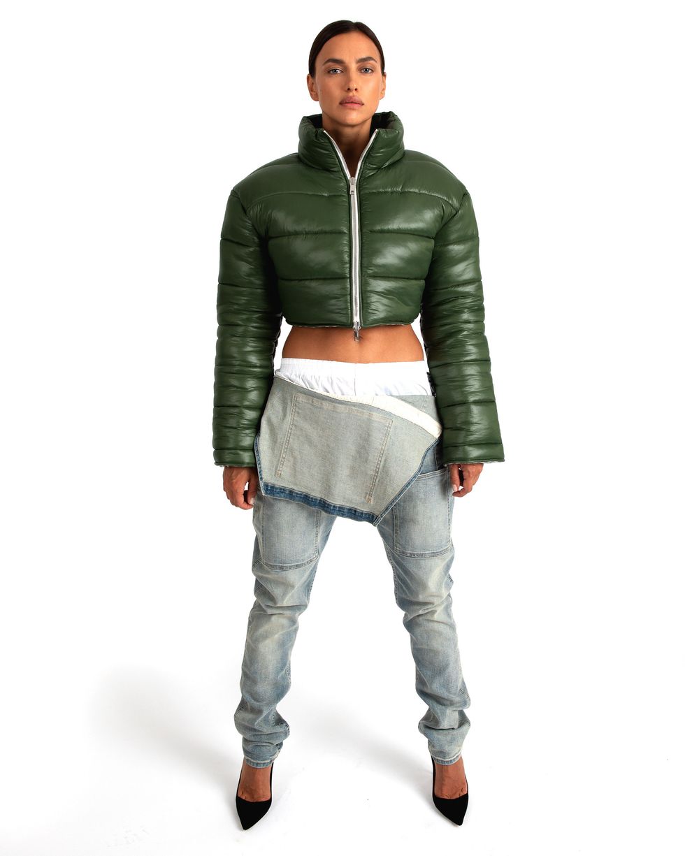 In addition to the tomboy and utilitarian references, the lineup also features nods to feminine, couture-like details in neutral earth tones and oversized silhouettes. For the launch, Alex had Irina Shayk star in the brand's debut campaign (styled by Mel Ottenberg), while actor Gary Busey wears some of the collection's oversized gear and outerwear. And since he's not tied to a traditional fashion schedule, Alex is free to drop new collections as his own pace.