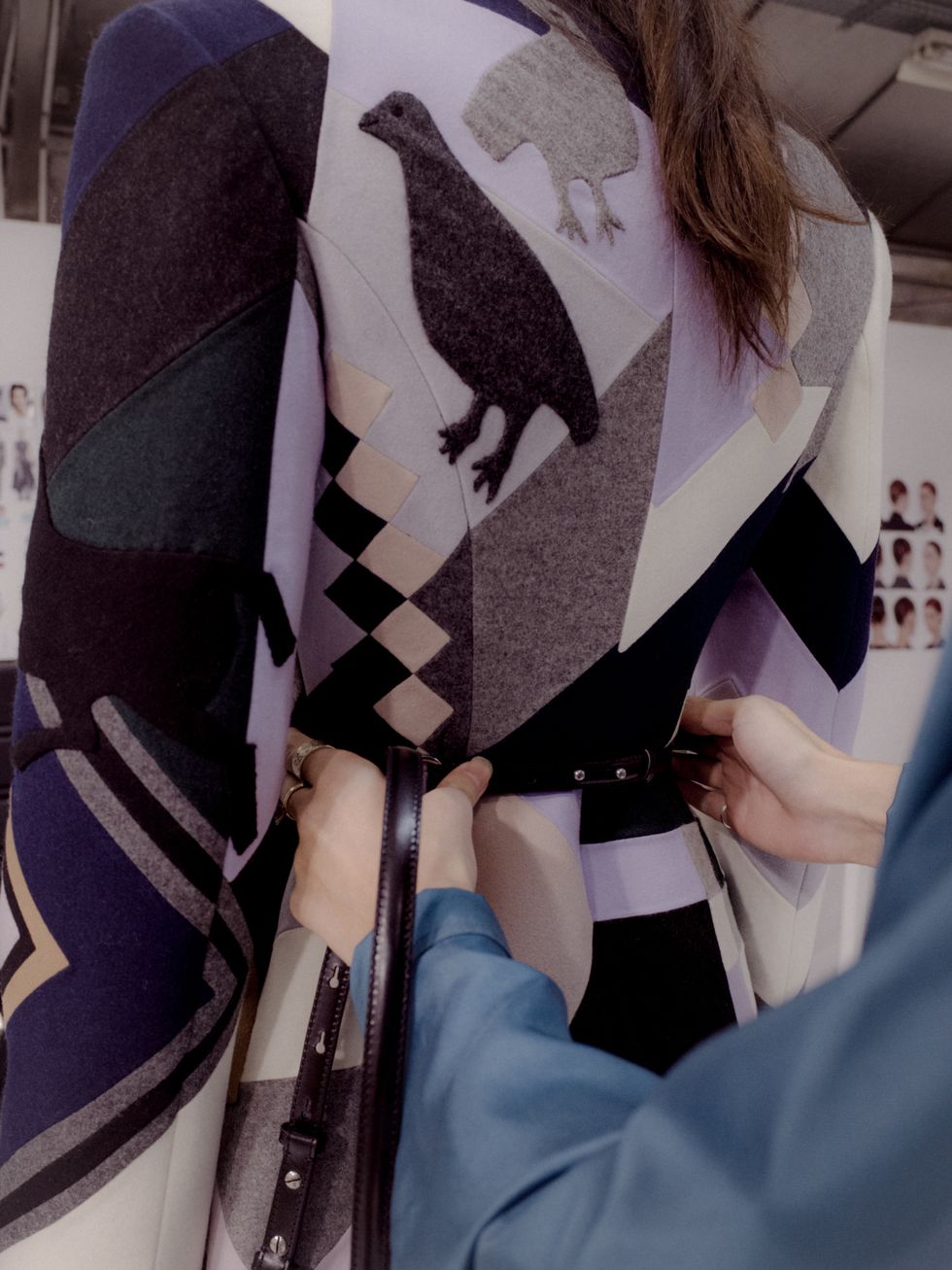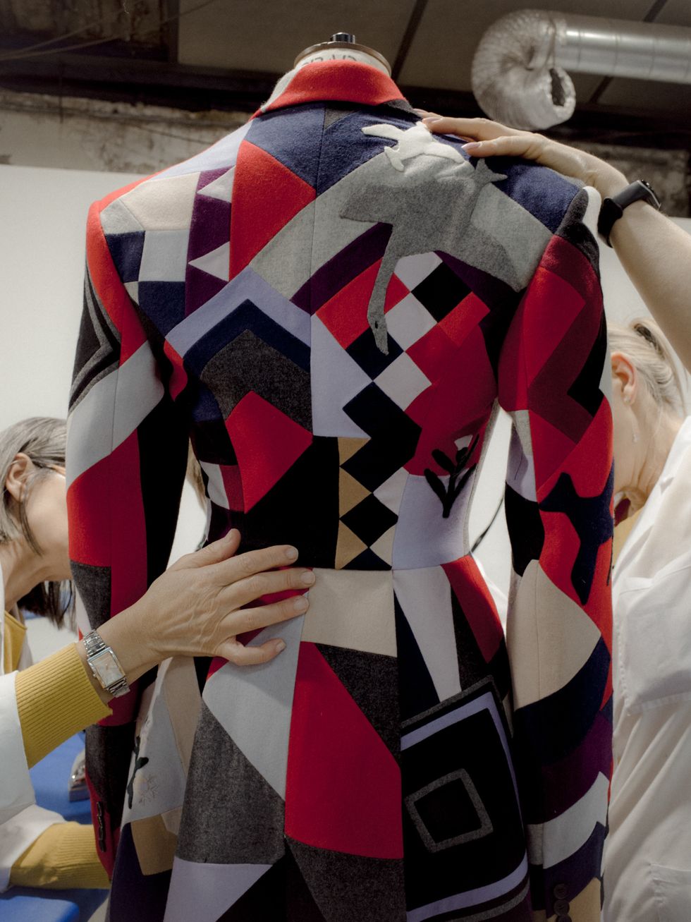 Burton, who said that the quilt represented "a narrative of someone's life," transposed and embroidered those patchwork designs onto tailored garments made from upcycled wool from past collections. Alexander McQueen gave PAPER a behind-the-scenes peek at the making of Looks 12 and 18, first seen on the runway during Paris Fashion Week.
