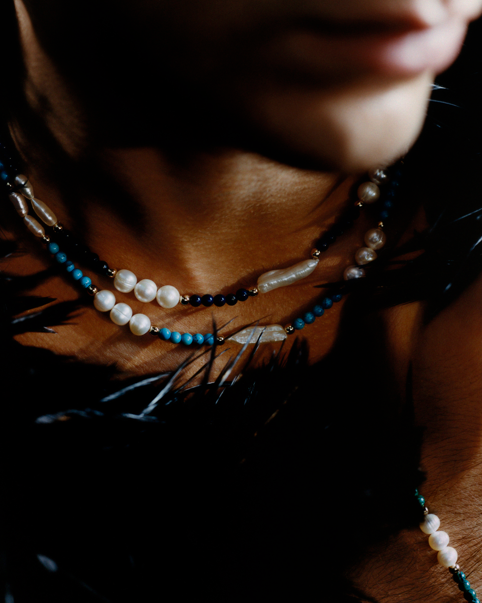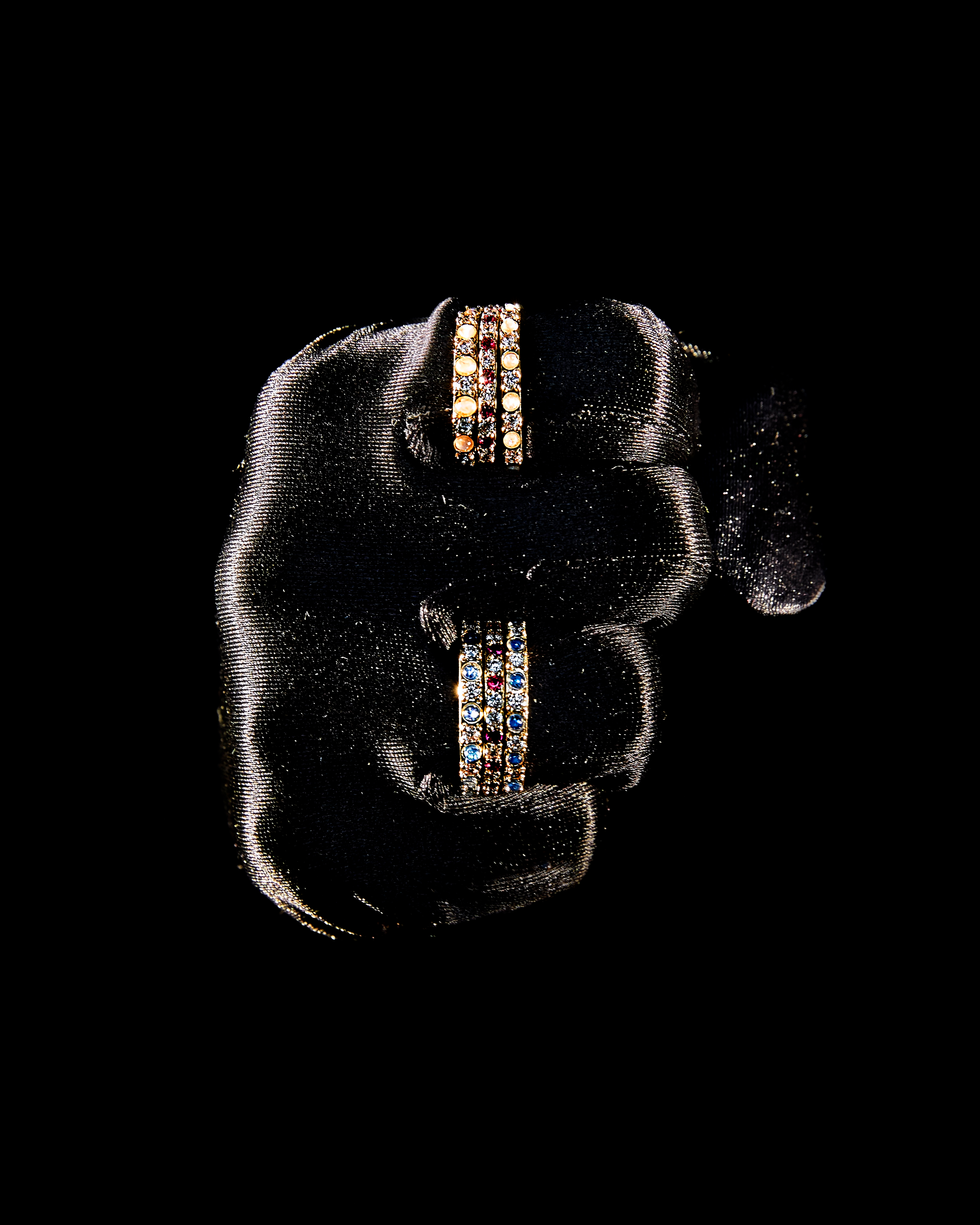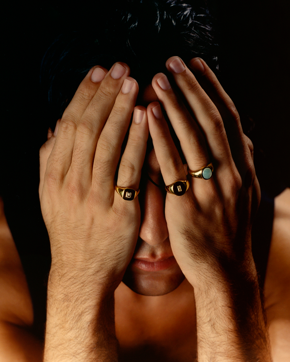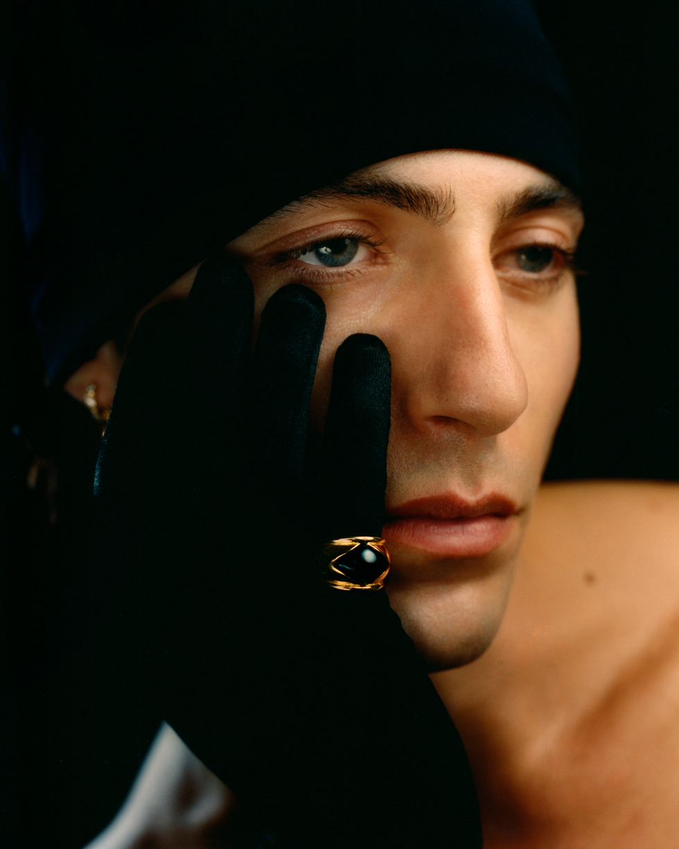 Much like Roth's jewelry debut in 2020, this launch is playful and personal. He specifically looked to his mother and grandmother, and the ways they'd finish every look with a different statement piece. Their sensibility is not only present in the vintage feel of certain styles, decorated with colorful gemstones, but also the accompanying campaign. (One image features Roth in a dramatic black headscarf and glove, with only "The Lust Ring" on his pinky.)