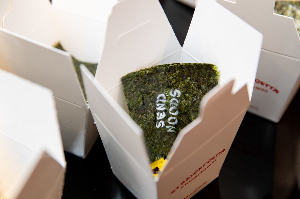 Snatch a piece from Alexander Wang's Chinatown capsule collection and you can get it embroidered with custom details as your heart desires. If unsure of what to put on a garment, it would be safest to stick to one of the opening night's favorite slogans including, We've Got Nice Buns, Send Noods, and our own favorite, StraightOuttaChinatown.