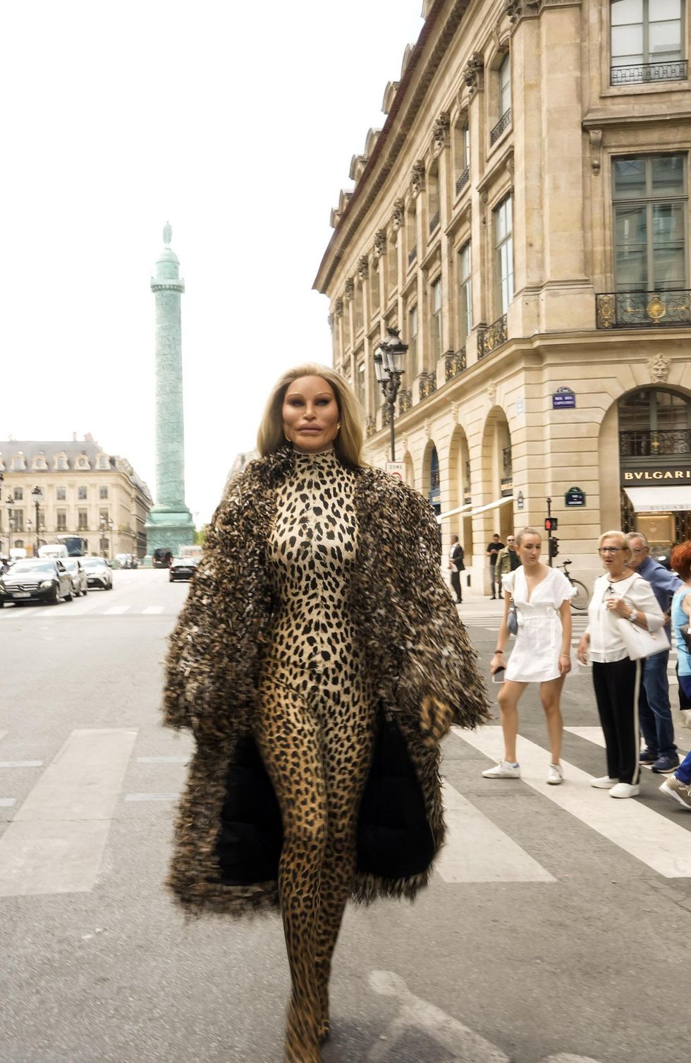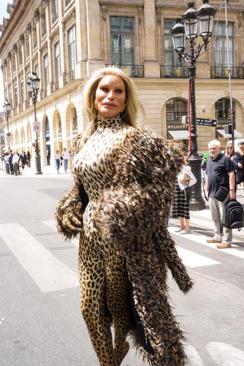 Like all her fashion transformations, she describes the Wildenstein outing as a labor of love. Still, "the pressure to pay homage while making it technically possible with the limitations that come with practicality was a concern," she says. "But doing a respectful, slightly warped transformation is fitting in my work while sharing unconditional love towards someone I admire deeply."