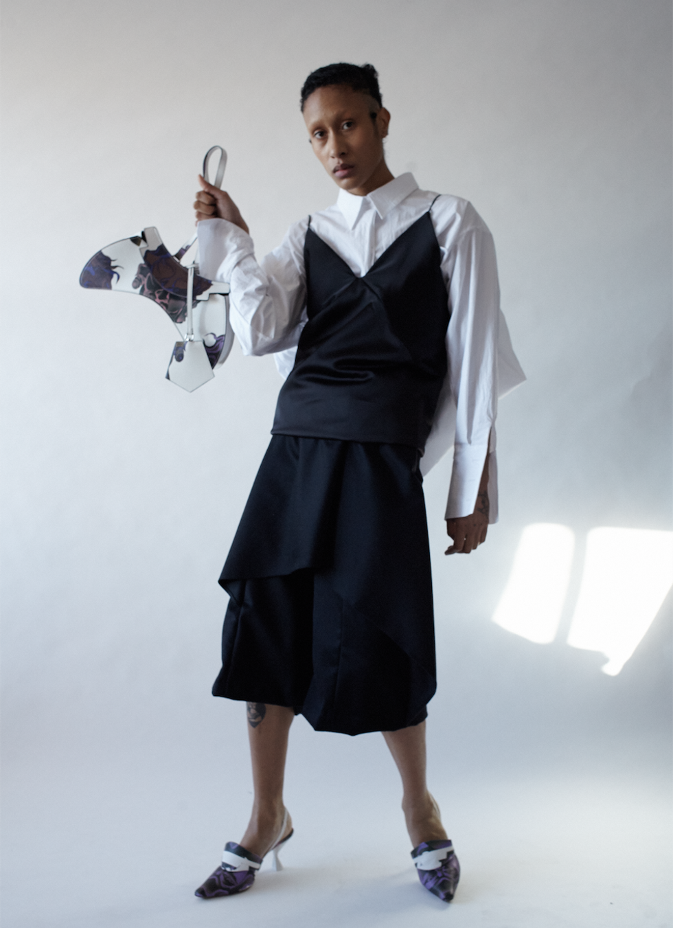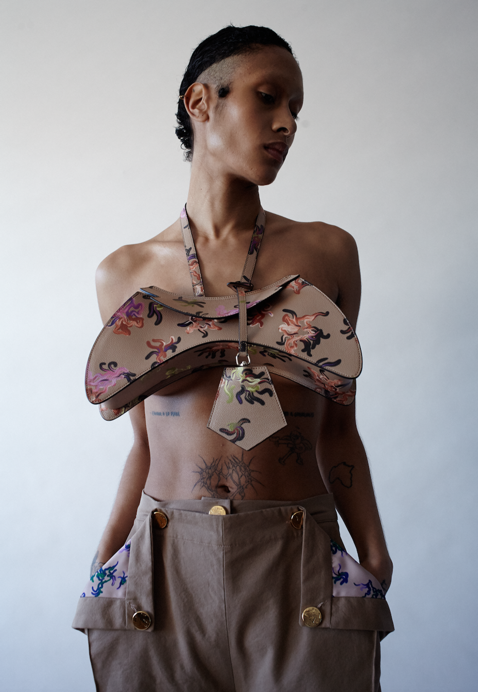 Now, at 25, the Gaultier protégé and former Chanel consultant sits at the helm of his own namesake label, a brand new e-store and a signature range of Manette handbags. Seeking inspiration from carefully constructed characters in the same fashion as his mentor, Maitrepierre has already released four full-range collections, each of which boasts a firm grasp on his whimsical, gender-fluid style. Where his first two collections set the tone for the House, reinterpreting traditional silhouettes with loud fabric combinations and double-take-worthy accessories, his following Spring 2020 collection emphasizes his storytelling abilities, painting a picture through animalistic character interpretations and nature-inspired ensembles.