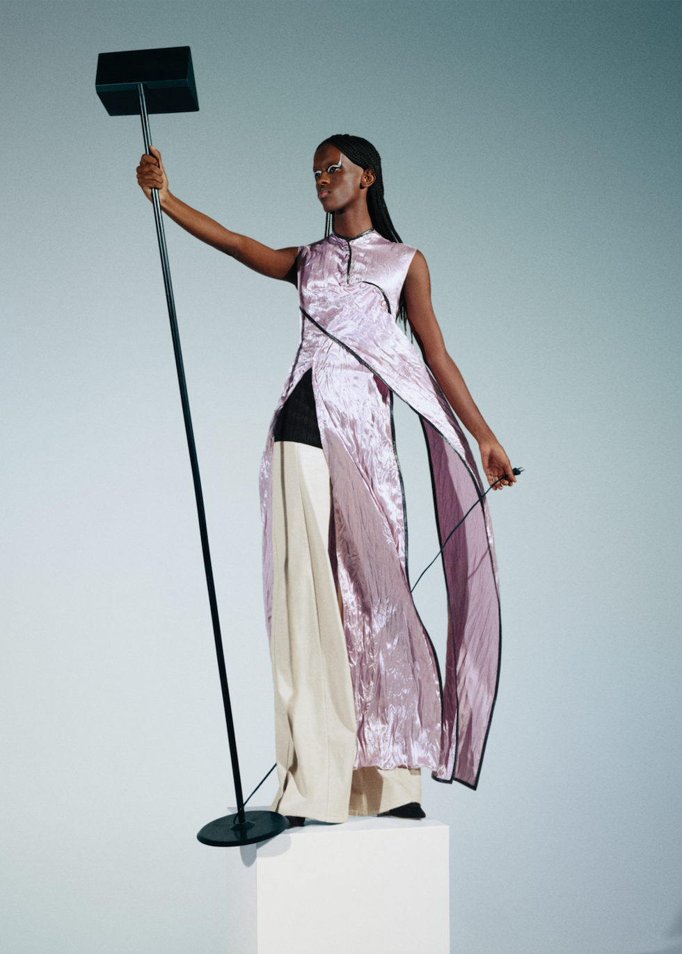 Today, Maitrepierre is working diligently to finalize his next collection, and for this one, he's centering on the more ambiguous "character" of sustainability. "For the collection we are preparing for September, we are working a lot with the idea of collage," he reveals. "We are going to make a collection just with trash. The idea is to do something very haute couture, but upcycled. The idea is to be a bit more conscious." Recognizing fashion's fault in the global climate crisis, Maitrepierre is determined to present an eco-conscious collection at a parallel level of artistic expertise. "It's a very complicated moment in fashion right now," he says. "It's no longer very easy across the table to produce outside of France. This is better for everyone and it's better for us."