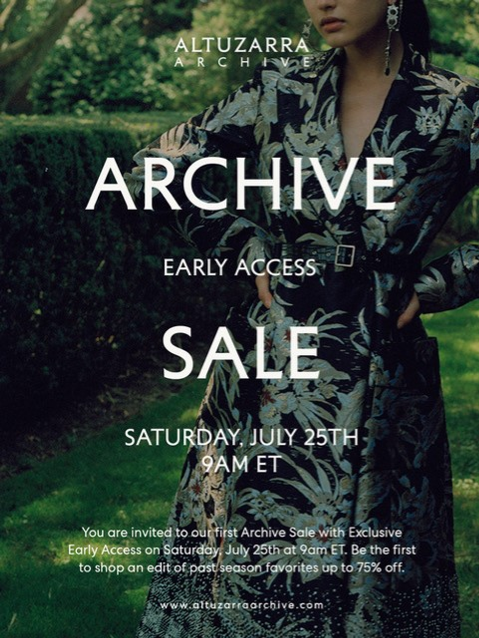 Mark your calendars for July 25, when the sale at altuzarraarchive.com begins at 9:00 AM.