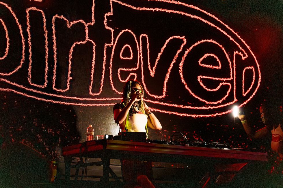 I’m onstage at 1015 Folsom in San Francisco, watching her play with the crowd and her dancers. She bounces back and forth from the decks to perform her new material and spin older tracks, like “White Noise,” which the whole club goes up to. Alumni of the first ever Noir Fever writing camp, the reason I’m in my hometown at all, cluster around Aluna and the dancers, the joy of the experience written across their faces. I struggle to maintain my own composure, making note that it is, without question, the most fun I’ve had at a party all summer.