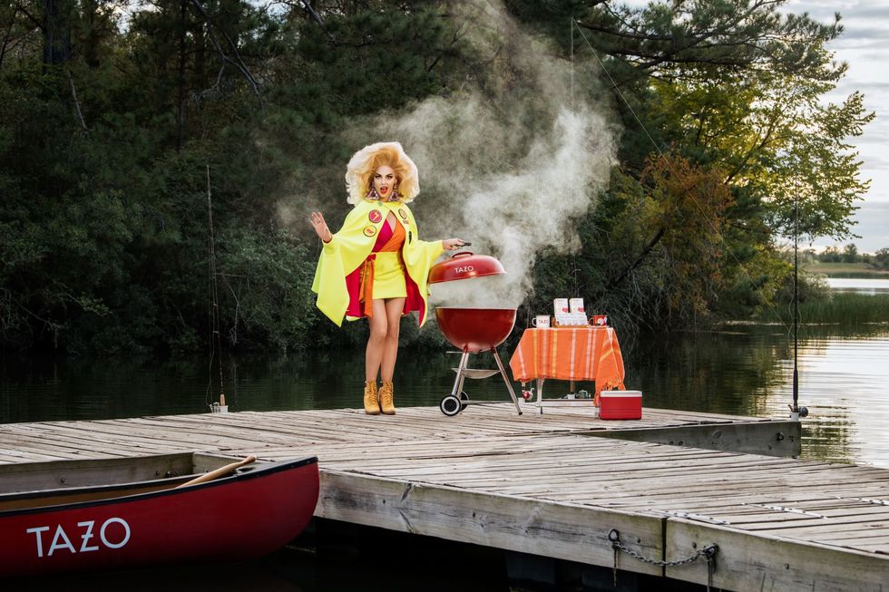 Fast forward a little bit and I go on Drag Race and I'm sharing my art with the world, then Dancing Queens, so I've been taken out of my comfort zone a lot. We started talking about what were some of my favorite things to do as a kid, one thing that stuck was the highlight of my year was going to church camp over the summer for one week. When I left that, I felt so motivated to conquer the world in a positive light, and TAZO was like 'that's it! We want to create a camp.' I'm there just sitting thinking, 'how can this be a reality though? Is this possible?' and they were like 'absolutely. We'll craft it for you and use it to get people out of their comfort zone.'
