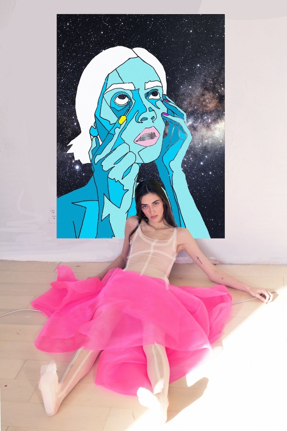 Aliens are landing in the City of Angels. New York-based artist and runway model Amanda Googe will be showing portraits at the W Los Angeles next week from her new series, "My Aliens," in which she's turned her and her loved ones' feelings of alienation into celestial, larger than life art works. The twelve 36x48" pieces each feature a lone extraterrestrial giantess traversing across geometric landscapes.