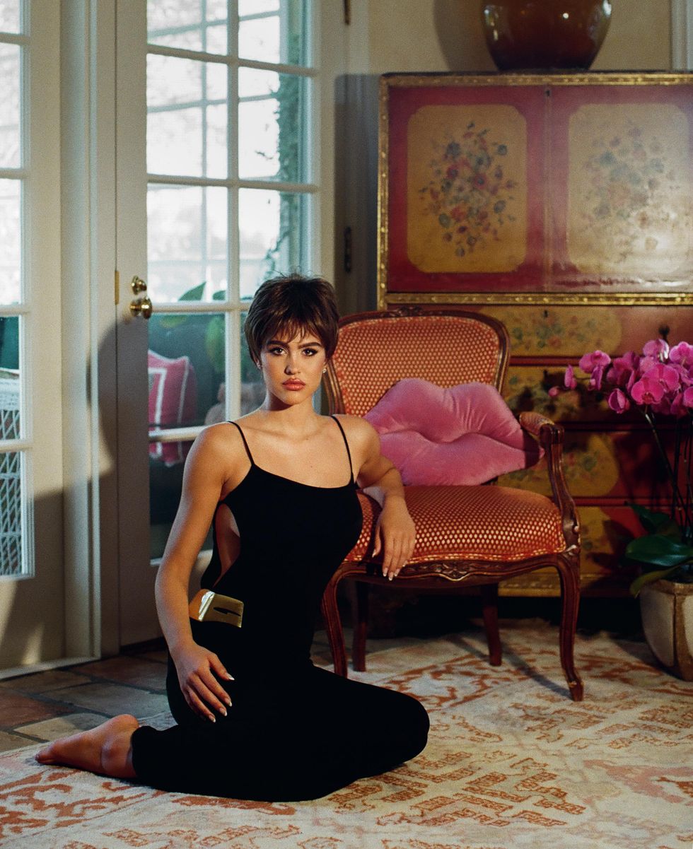 Amelia: I feel like people don't really realize it, but my mom and I are spitting images of each other. We look like twins, but different. All I was thinking about was, I need to get my ass to a wig shop. The budget I spent on this was probably $200. I bought one Lisa Rinna-looking wig and then I got one long black wig and cut it and curled it. They were all synthetic, so it was hard but I made it work. I messed and played with it until I finally resembled the absolute perfect look of her in the Alaïa dress. I don't even know how it came together, but it did. All I did for the shoot was buy two wigs and then I went into her bathroom and stole some jewelry.