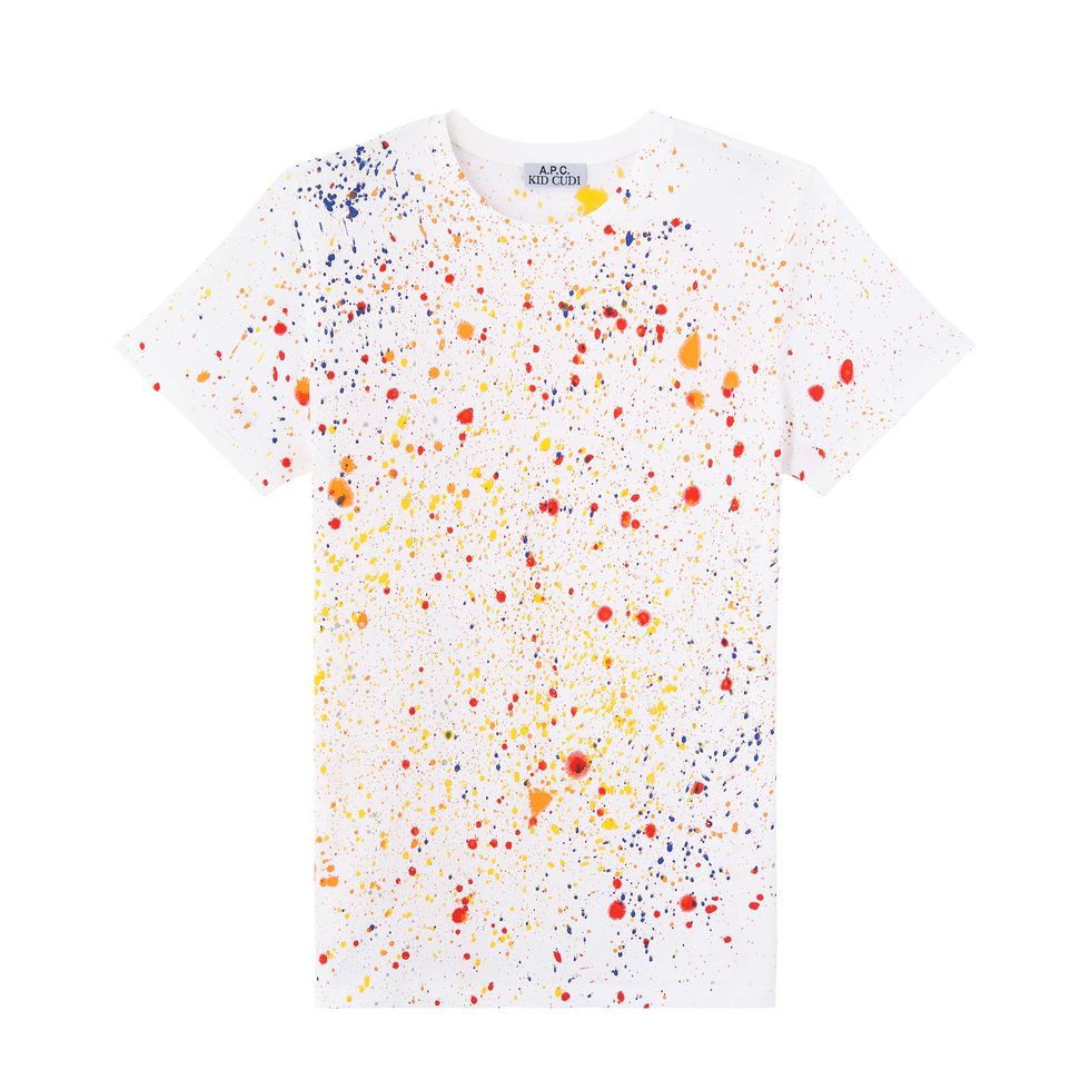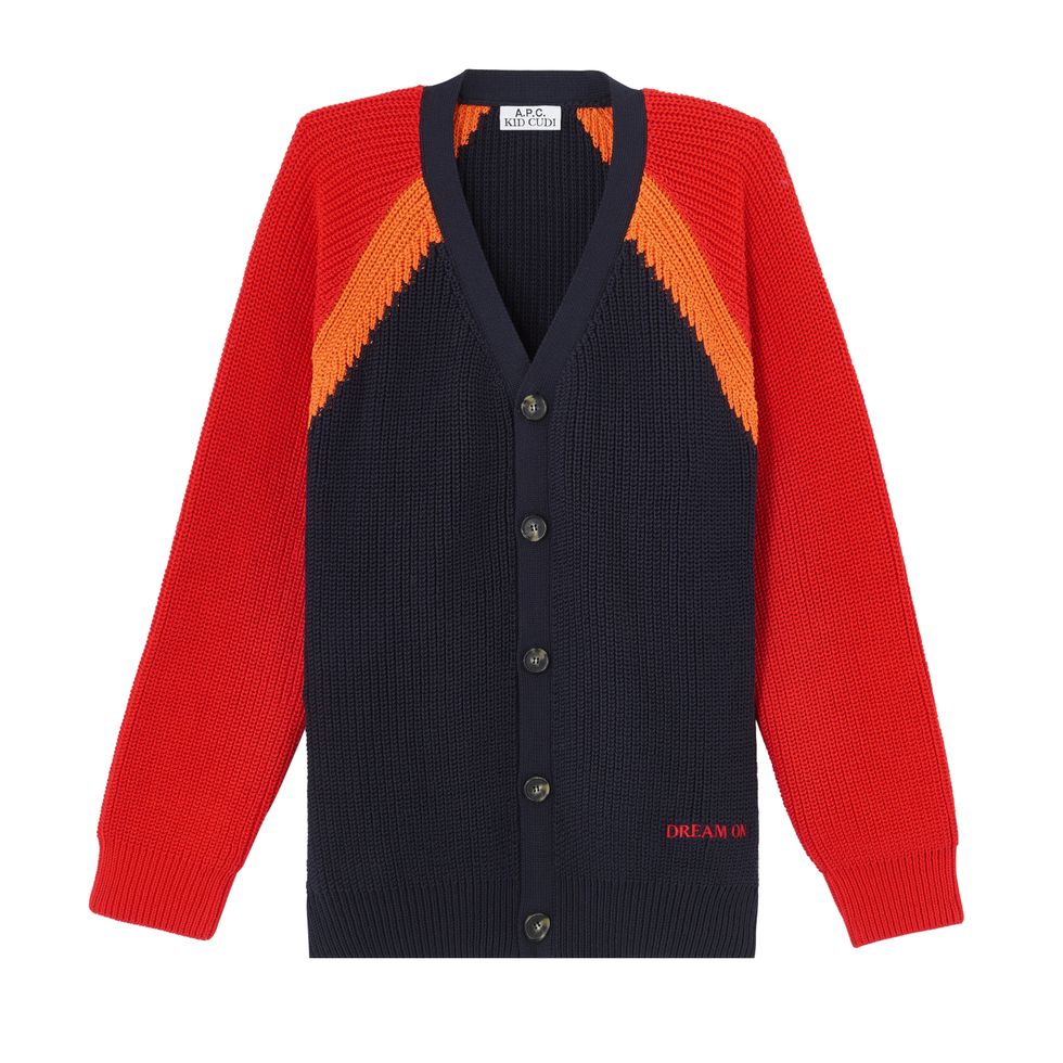 Reworking the petit new standard and petit standard jeans with the words "Dream On" embroidered under the left pocket, Cudi designed a cardigan with the same message in a multi-colored knit. Emphasizing color, the paint-splattered tees and denim overalls are another focal point of the collaboration, which is the first in a forthcoming series of capsules being made with other creatives from across industries.