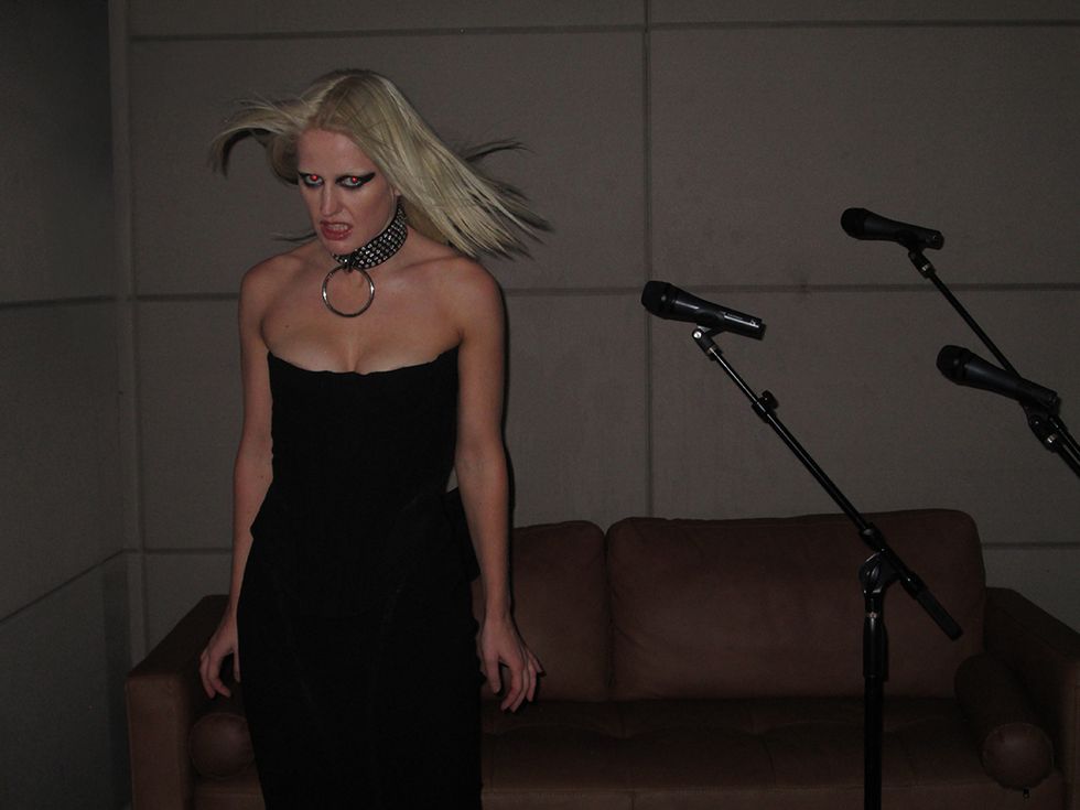 That was the first song we recorded. I always try to make a space where there are as many women around as possible, but in rock and roll honestly, it can be kind of tricky. We’re in a studio and everyone is awesome, but it’s just me and a bunch of dudes. Sure, this is technically my space, you know, female-led punk band, sure, sure, whatever. But, at the end of the day I’m the only one snazzing up. I’ve got my blue eyeshadow on. My small victory is how I dress and what I wear. It’s my way of carving out my feminine space. I’m gonna wear these micro-shorts and this tiny bikini and make my hair all big. That’s a small victory, I get to express my femininity. Femininity is a strength and not a weakness. Sometimes people criticize female musicians like, “Why do they have to wear tiny bathing suits on stage and men have to wear normal clothes?” I see it as, “Why do men have to wear normal clothes and girls get to wear fun clothes? Like, that sucks for you guys!” Don’t get me wrong, I’ll wear track pants and I don’t give a shit as well. But the fact that I allow myself to do that is so important to my expression. The world kind of hates women. I’ll go to the shop and do something super normal in jeans and a shirt, and I still get harassed. I get harassed no matter what I wear. So for me it’s going, “I’m gonna be loud and rub this in your face.” It makes life more exciting. One of the lines is, “If I didn't show up in something spicy/ The cold world would feel even more icy.” The world is a horrible place sometimes, but there’s so much beauty in it and some of that beauty is in how we wear stuff. Even if it’s just choosing a really ugly outfit, just shake some shit up.