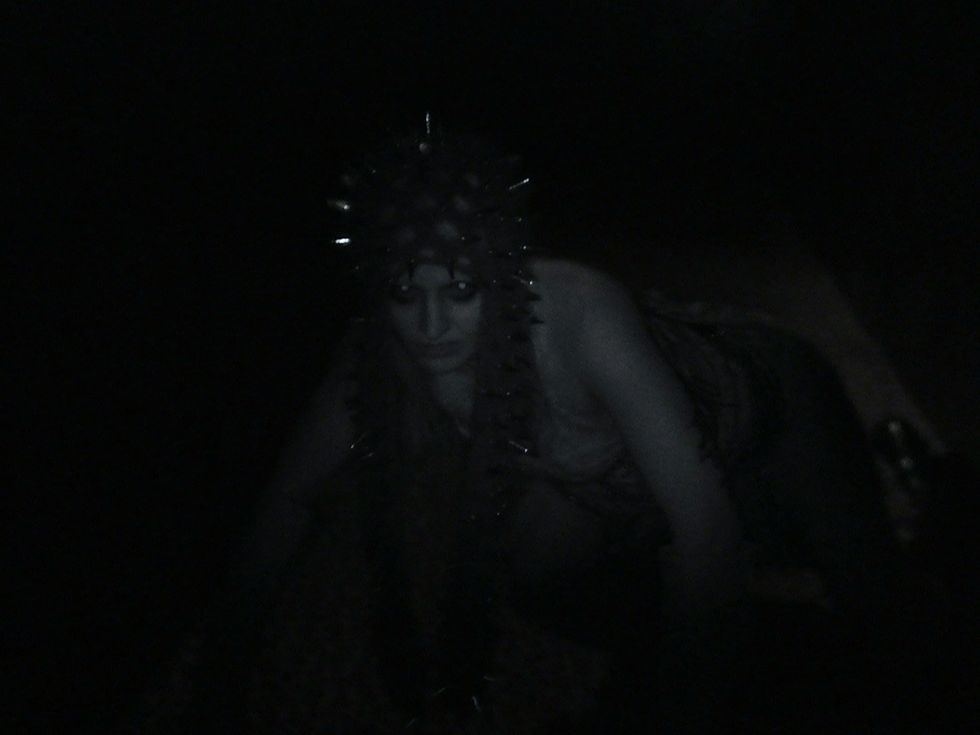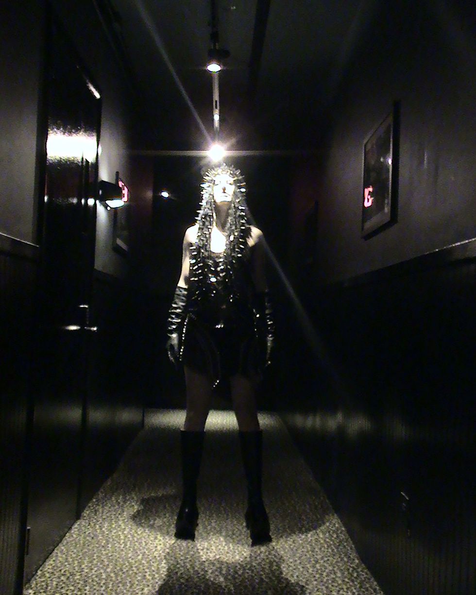 Bra and panties: Haphazard, Bottom and choker: Zana Bayne, Scarf: Rex Yeewang, Gloves: Carolina Amato, Shoes: Jeffrey Campbell