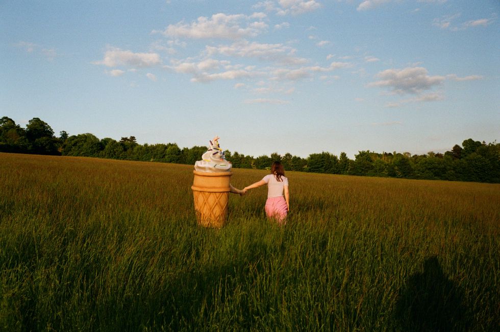 To sweeten the deal quite literally, Anna has teamed with director Harry Barber for its surreal video, premiering today on PAPER. In the clip, Anna plays an empowered matchmaking temptress to a person dressed as an ice cream cone (with sprinkles!). The pair — Anna and the ice cream cone — proceed to literally take space by frolicking around the city and in fields, a visual that is just as adorable as it is inherently political. Anna says she wanted to flip the script with the song and video, turning a prospective male love interest into an object, rather than the other way around. Mission accomplished.