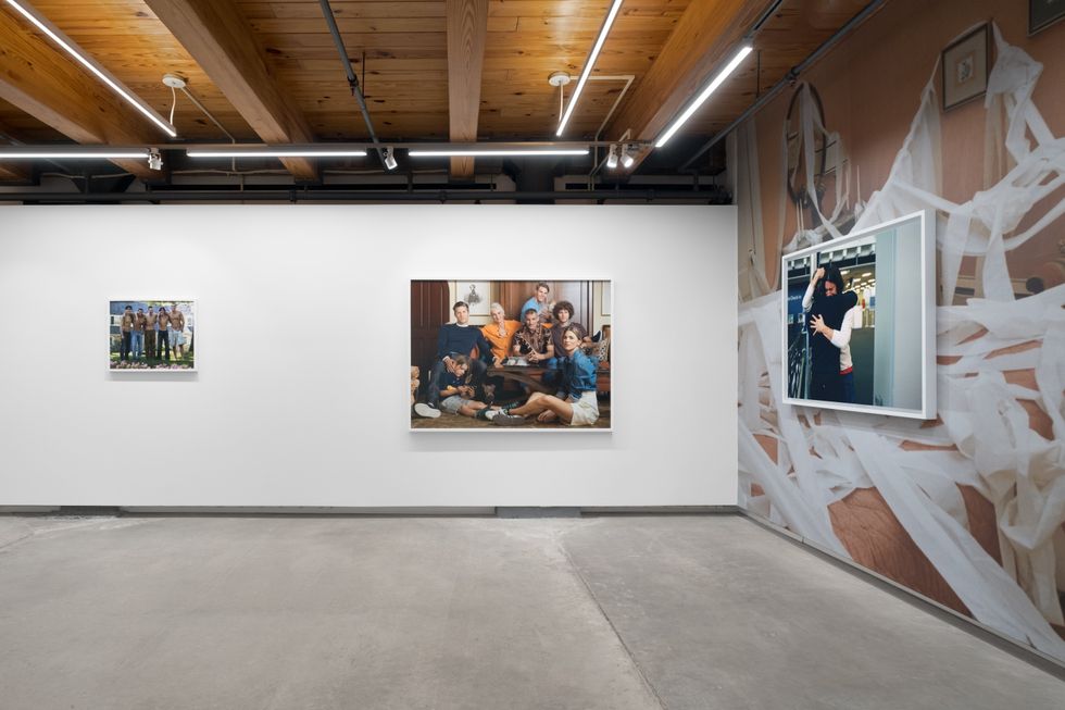 Take, for example, Alyssa Kazew’s photo of five shirtless men, smiling with six packs on a perfectly green suburban lawn. Without understanding its relationship to an “art show” or the photographer’s background, it might seem superficial and commercial, like a stock photo stuck in the early aughts when Abercrombie & Fitch perfection defined aspirational imagery. Inside “Photography Then,” though, it reads as self-aware, nostalgic and tongue-in-cheek.