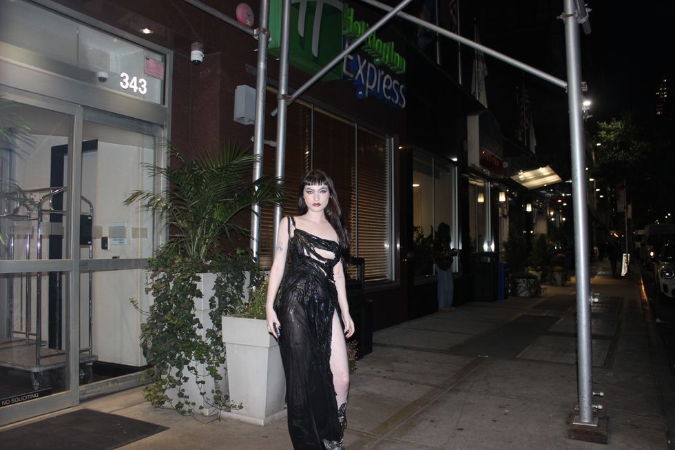 Strutting into the New York City premier for the Palme D'or winning film Anora, Wolk was wearing custom Elena Velez with makeup done by Sterling Tull. In Anora, Wolk plays Crystal, the friend and confidante of the titular Ani. It’s quite the booking, especially given that Wolk connected with Anora’s director, Sean Baker (Tangerine, The Florida Project, Red Rocket) over Instagram initially. Wolk reached out to him after she attended a Q&A for his film, Red Rocket, and didn’t get to ask a question. Baker, intrigued by what she described to Variety as “her weird internet presence,” requested to see a reel, leading to her casting.