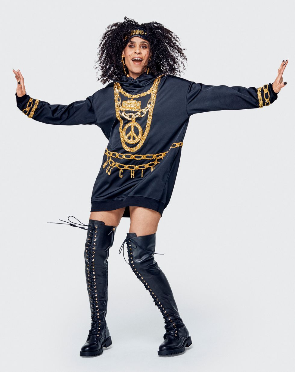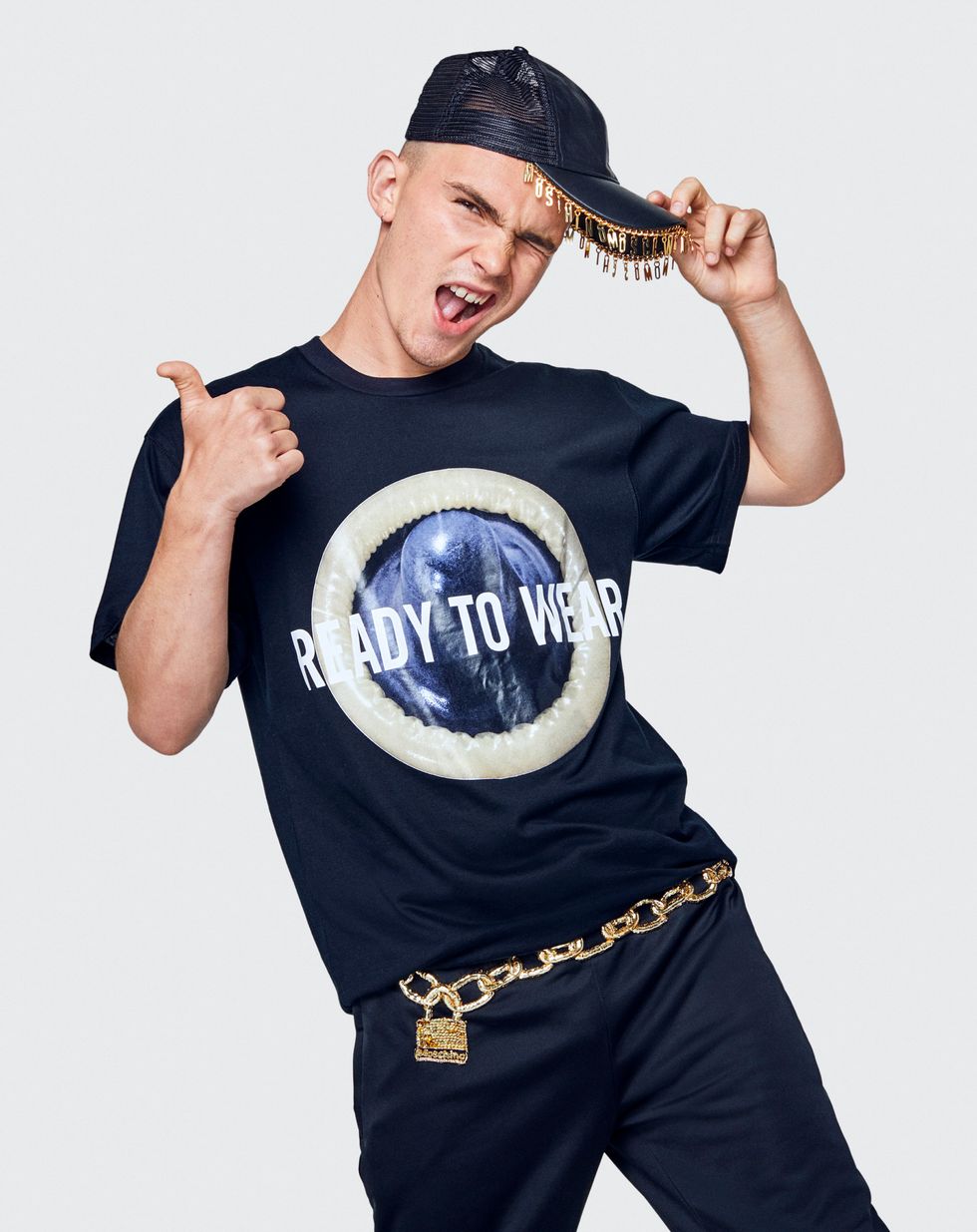 Jeremy Scott's signature, whimsical style stems from designing for his friends. RuPaul's Drag Race season 10 winner Aquaria, musical duo Amiaya, alongside models Barbie Ferreira and Teddy Quinlivan join Scott, his assistant Sakura Bready, publicist and close friend Pablo Olea to model Moschino's new collaboration collection with H&M. Actresses Bria Vinaite and Mj Rodriguez also notably make appearances. The party-ready capsule — complete with Disney characters, head-to-toe sequin looks, and clever plays on '90s music culture — hits stores and HM.com on November 8.