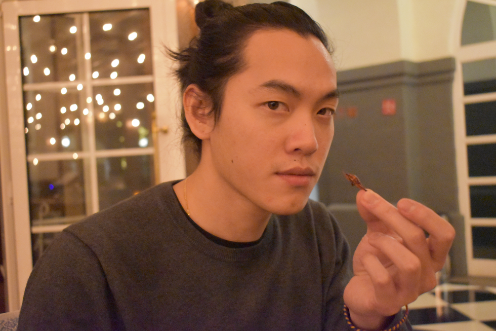 The Knocks: Our director of photography, Eric, showing us the best way to eat a grasshopper.
