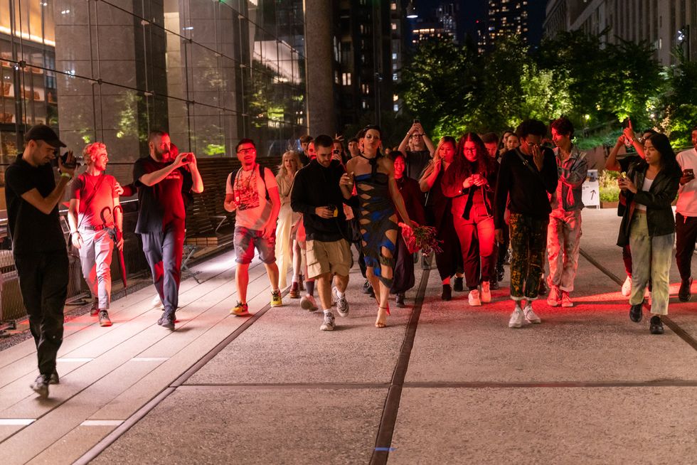 Nights one and two both ended with Arca leading the crowd directly from her stage, out of the theater, down the street, and onto the Highline for an even more intimate hangout that further broke down any final barriers between artist and audience. One fan told her that Mutant helped him feel beautiful being HIV+, and another gifted her a custom tiara. Arca made everyone carefully listen to the sounds of a helicopter landing nearby. "Feel it through your body," she said, ever the fan of unconventional sounds and how they impact us.