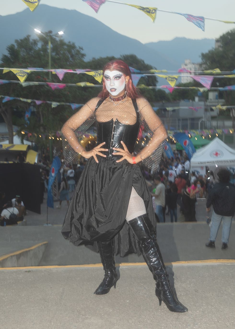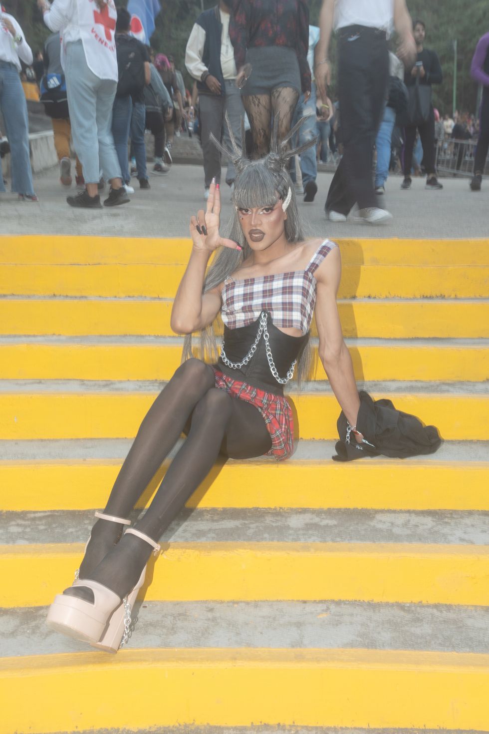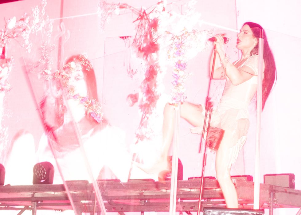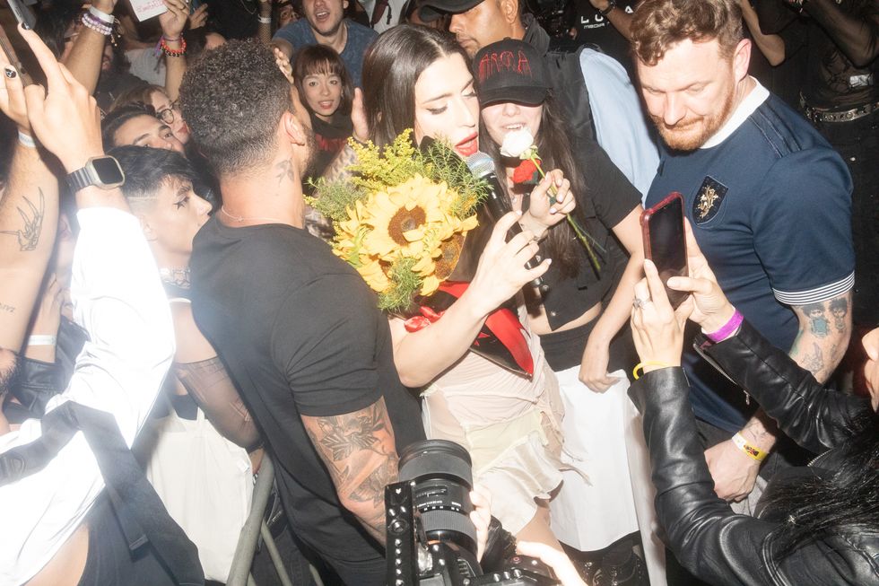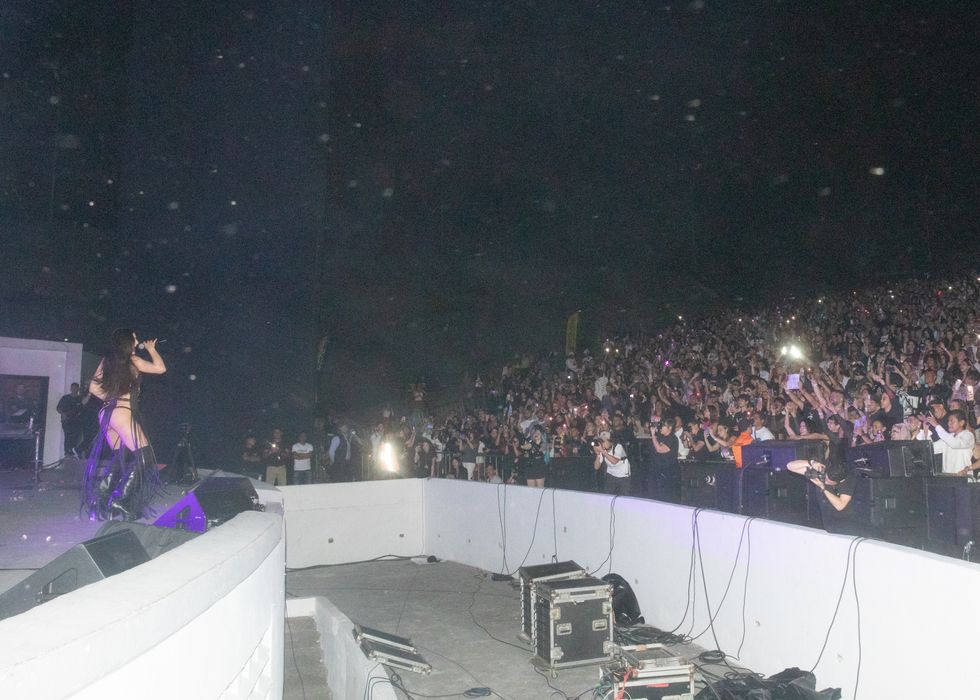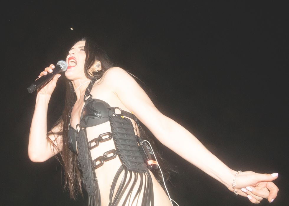Amid costume changes and new and old visuals, the crowd went wild. “I have seen Arca perform several times, and I had never seen her be this emotional in a show,” Alliegro says. “Just taking in the energy, feeling the public, and the warmth of her fellow queer Venezuelans. She played el cuatro, a national instrument, towards the end of the set and interacted with the public to the chords of 'Cambur Pinton,' a typical melody used to tune the cuatro. After this, she played an extensive DJ set and played with buckets to create 'Tambores' another typical instrument. The set was coming towards the end, and the public acclaimed that she played “Tiro,” a song that mentions every state of Venezuela and had become an anthem to all Arca fans from the country. She decided to scrap the two final songs and sing 'Tiro' as the encore of the show, making the people go crazy.”