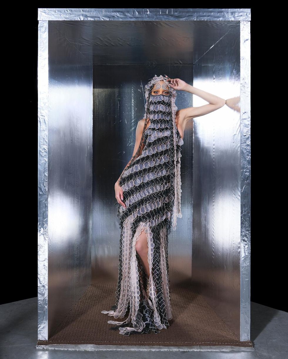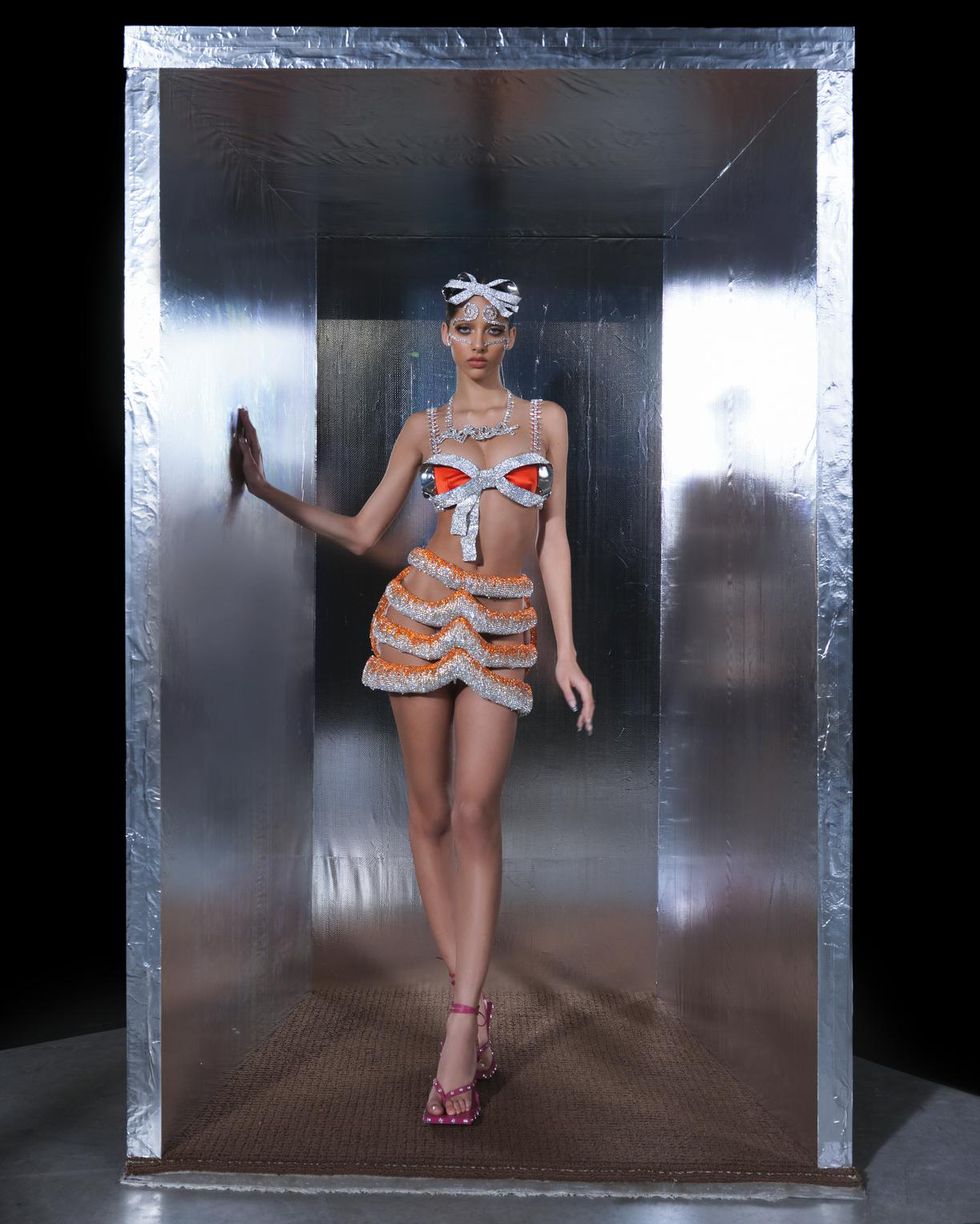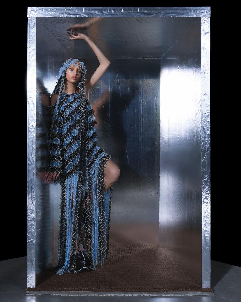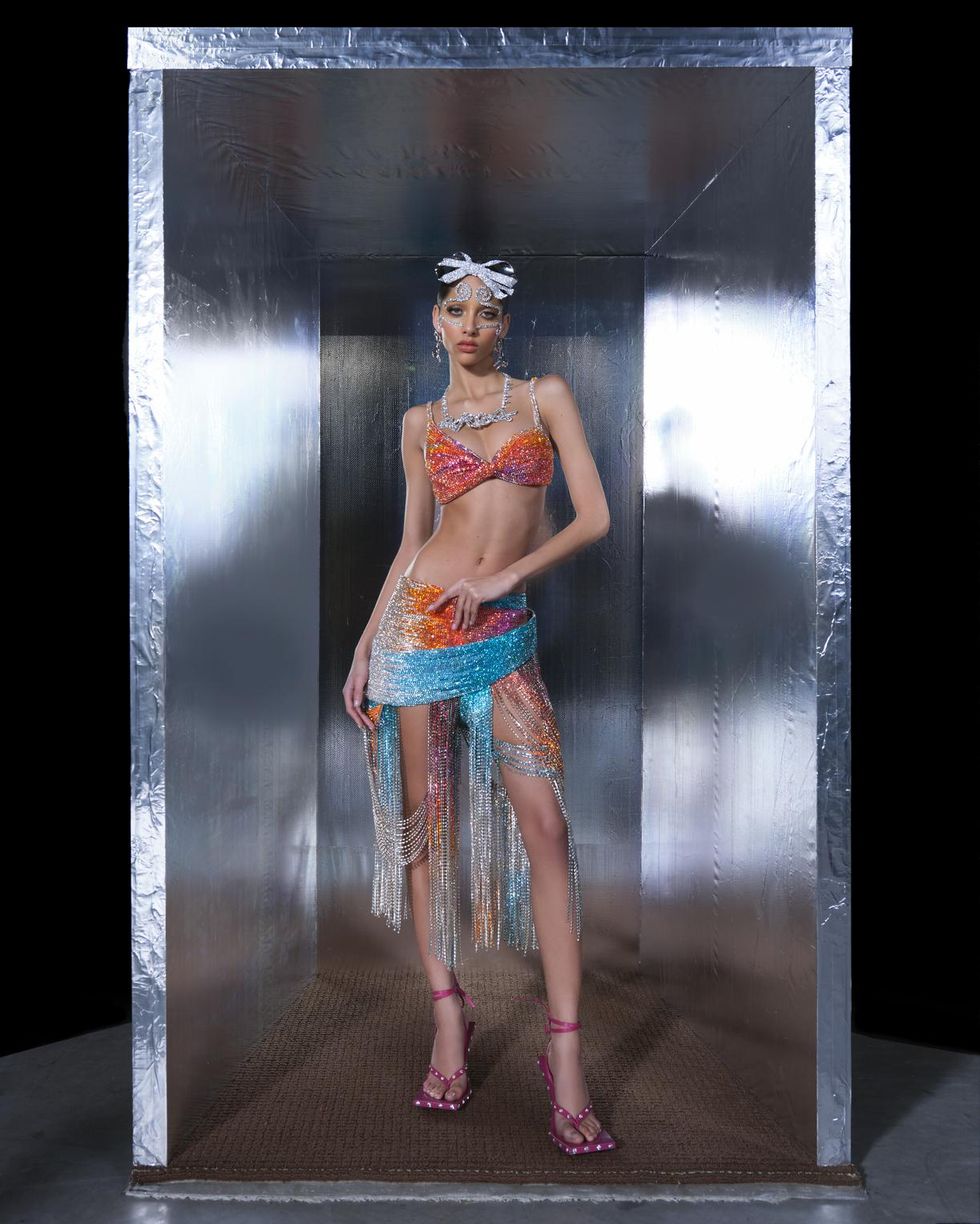 Shown as a 14-page lookbook and video, the collection was inspired by the body adornment of ancient civilizations and incorporated almost 500,000 Swarovski crystals. Despite couture's exclusive connotation, Area founders Beckett Fogg and Piotrek Panszcyzk wanted to show that rigorous, handcrafted design made to order should be open to all body types and sizes.