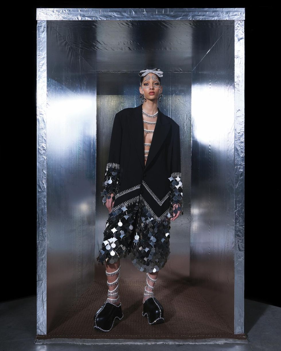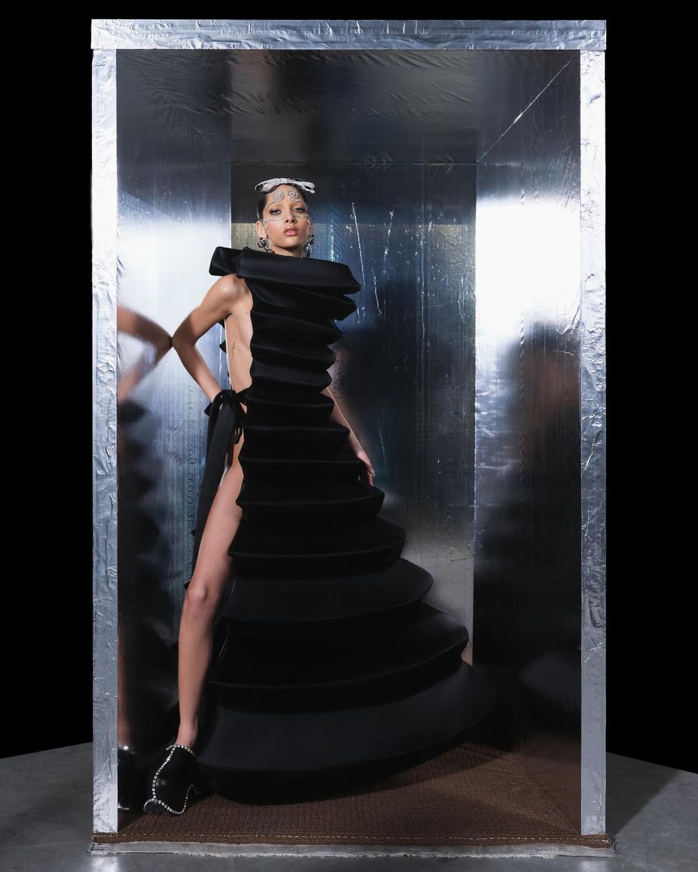 So it was refreshing to see New York-based indie label Area upend those traditions with a bang today at the reveal of their first couture show. (Though not an official member of the Chambre Syndicale de la Haute Couture — Paris' governing body that decides which brands can take part — Area debuted the category on the final day of the official schedule.)