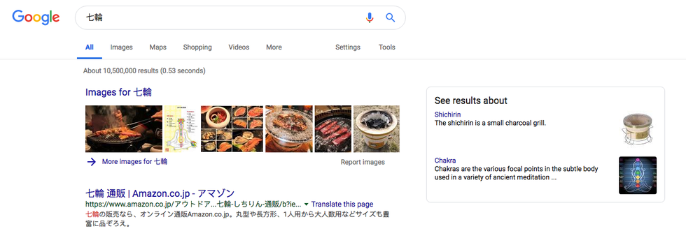 "The kanji character 七 means "seven," while 輪 means "hoop," "circle," "ring," or "wheel." However, when you put them together, the meaning is different! 七輪 (shichirin) is a "small charcoal grill" and not "seven rings," which is written differently in Japanese."