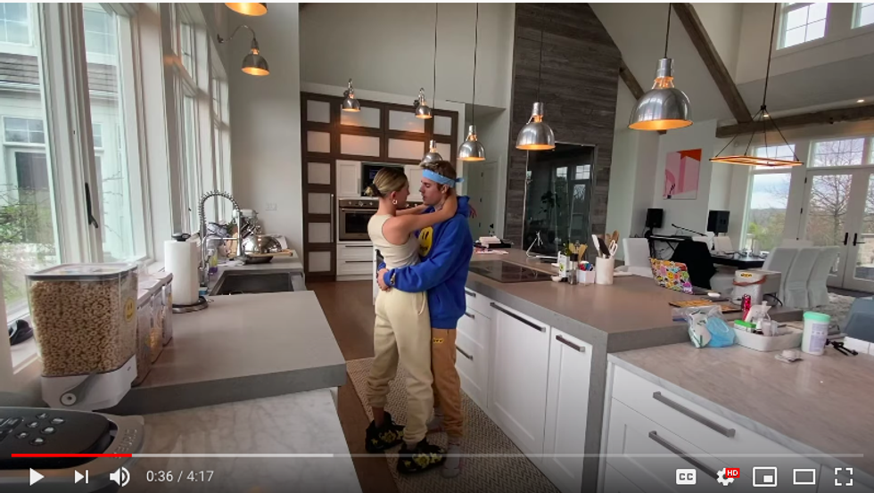 The mushy slow-dance duet (proceeds go to the First Responders Children's Fund) is questionably about wanting to stay in quarantine forever with your honeys ("I'ma get to know you better/ Kinda hope we're here forever," croons Bieber). The video features a collage of fan-submitted clips of regular schmegulars doing cute stuff in quarantine (swaying in prom dresses, cuddling with dogs, blowing out birthday candles etc.) in their normal people homes. Sprinkled in are celebrities like Joan and Frankie Grande, Chance the Rapper, Kylie Jenner, Kaia Gerber and Jaden Smith hanging out in mansions (please clock the Biebers' massive Drew-branded Cheerios dispenser).