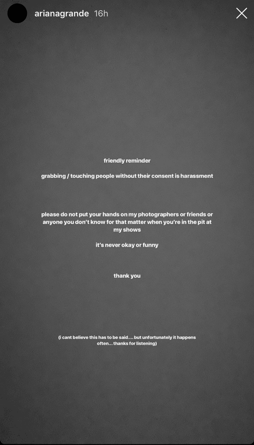 Though it's something that should really go without saying, Grande had to post a "friendly reminder" about the topic to her Instagram stories last night.
