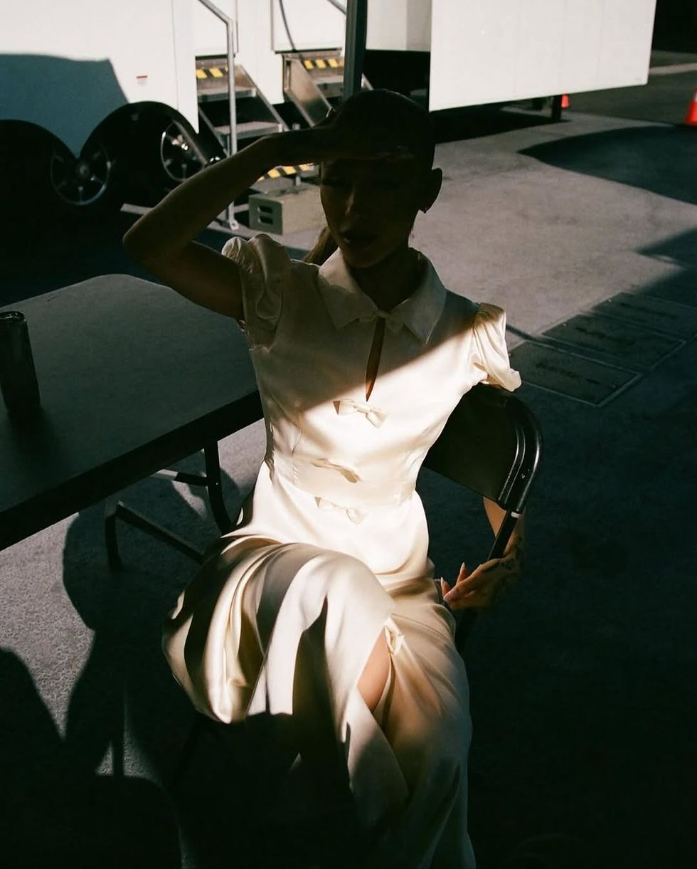 We were so honored. I think this is our biggest celebrity moment yet. It's weird because we know that things can completely change in the blink of an eye so we kind of have an emotional guard up and prepared for the worst to happen, so we were almost like shocked that it actually was seen all the way through, but also so excited because we've always been fans of Ariana. Seeing her in the press so much around Wicked and then this being the time that she wore our dress on her album cover when she's like the most famous celebrity at this current time, it's just crazy. I feel like it also aligns with our rise. We're finally starting to feel like the brand is being recognized and take off in a more quick way than we've ever thought before. We're just hitting our fourth year, so it's kind of like the time that we've been waiting for: The time to see sales coming in at a quicker rate and our vision develop more. It was divine timing.