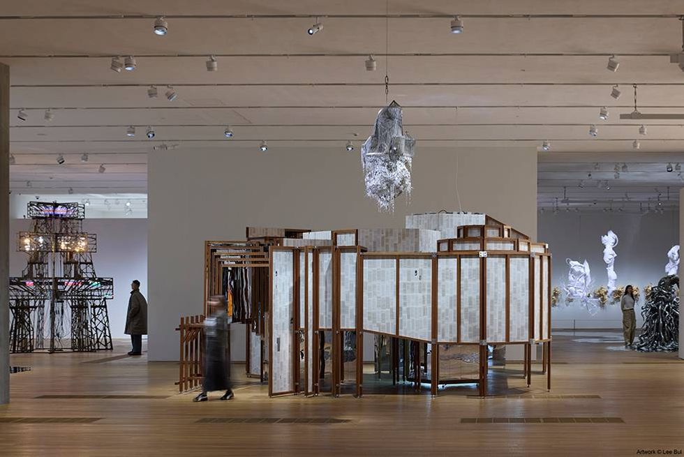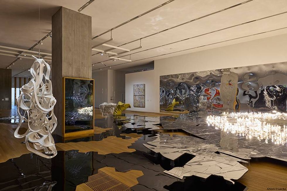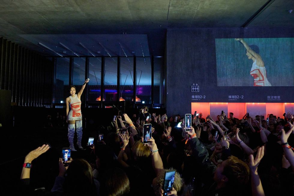 In the evening, all eyes were on the M+ Museum, which threw its signature opening bash in order to kick off art week. Headlining the party entertainment was KPop sensation Hwasa, whose single Good Goodbye has become a smash hit in Asia after being released last October. Lines for entry wrapped around the block, as fashionable art enthusiasts and exhausted curators stood side by side waiting to get in; once inside, they were greeted with an open bar and late-night access to exhibition spaces ahead of the performance. M+’s latest exhibition, Lee Bul: From 1998 to Now, was by far the most popular show; revelers roamed the Korean artist’s futuristic dreamscape, ducking through chromatic metal tunnels and roaming through infinity-mirror mazes.