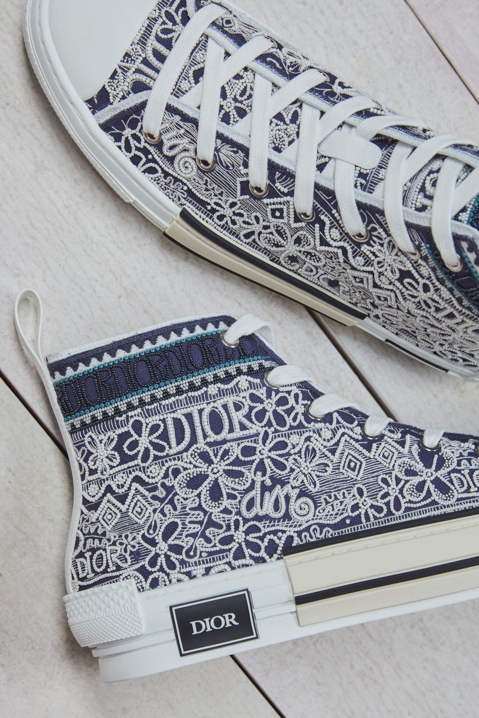 Held on the eve of Art Basel, Kim Jones showcased his Fall 2020 collection for Dior Men in a space across the Rubell Museum, where celebrities like Kim Kardashian West, Maluma, and David Beckham were all in attendance. The show featured two unique collaborations with Shawn Stussy and Air Jordan 1 sneakers, and utilized a range of colorful prints, textures, and graffiti-like patterns. The show was also nod to Christian Dior's beginnings as a gallerist, further bridging the worlds of art and fashion. See below for some behind-the-scenes shots of the final fittings, captured by photographer Jackie Nickerson.