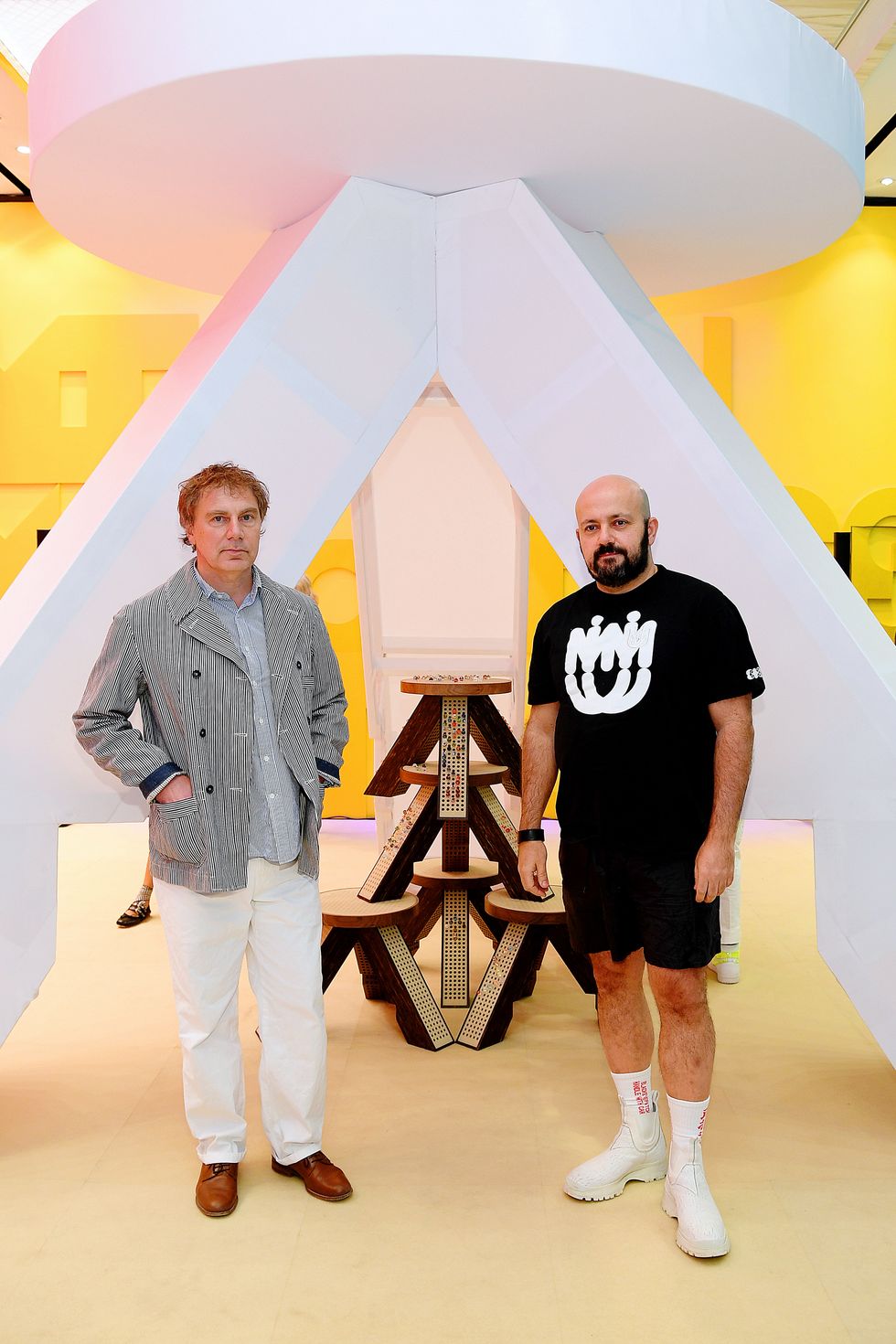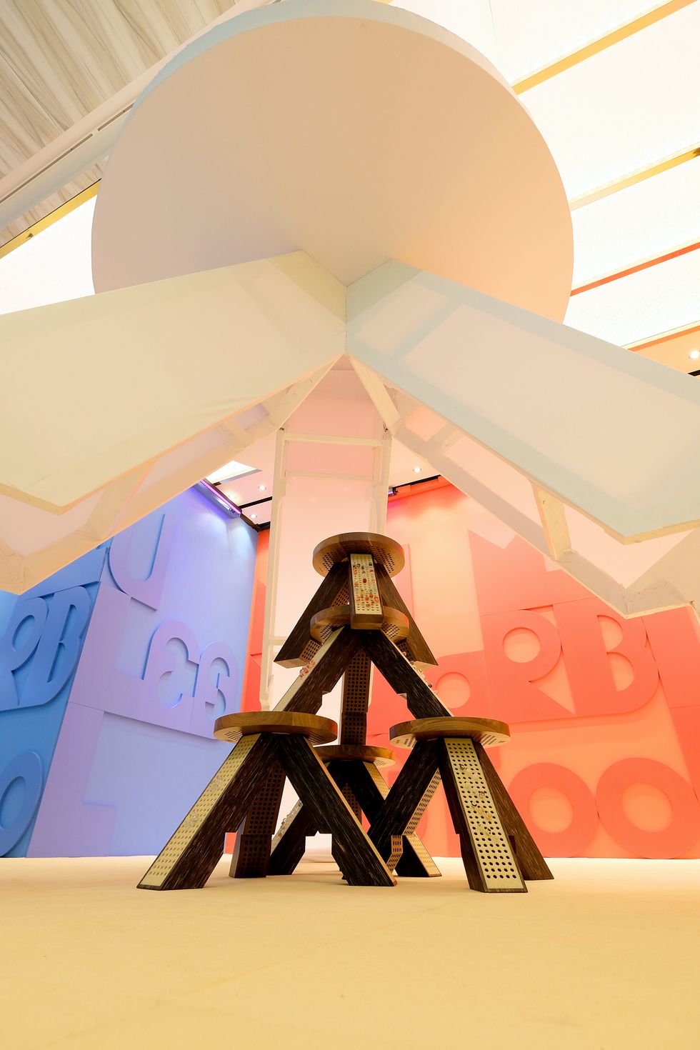 Miu Miu teamed up with Paris design agency M/M to create a limited edition stool for Art Basel, a follow-up of the brand's M/Matching Color Stool launched earlier this year in Mlian. The Miu Miu M/Marbles Stool, which was originally inspired by the label's Fall 2018 runway show set, is crafted with a mix of materials like wood, rubbber, and glass, and features matchsticks inserted throughout that can be moved around and customized.