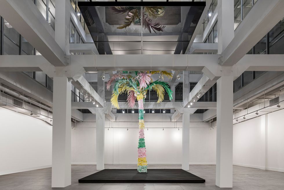 Designer Thom Browne will unveil his first large-scale public artwork on Thursday, December 5th, at The Moore Building during Art Basel Miami Beach. Palm Tree I (2019)—a twenty-one-foot tall palm tree constructed from yellow, green, and pink seersucker, pincord, and gingham oxford—is situated between a black mirror and sandpit, and operates as cheerful pop art as well as a meditation on ideas of work and play sublimated in notions of Americana.