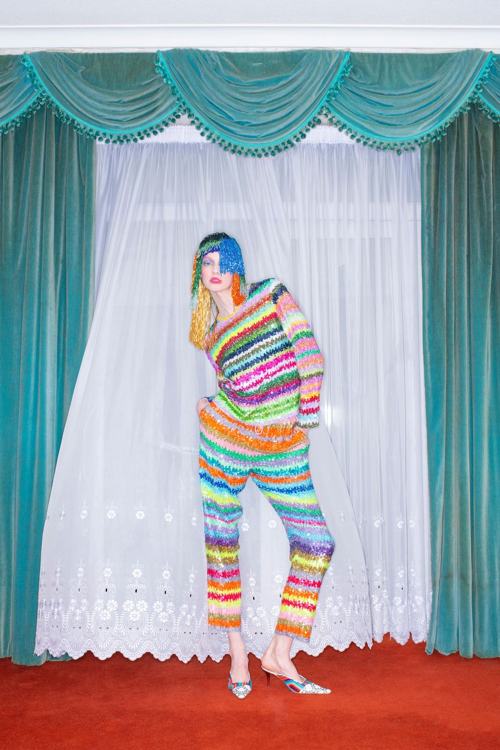 "It was quite a funny idea for when we were shooting this, because everybody's been stuck at home and all you can do is dress up at home because you can't really go anywhere," he says. "I find that idea really interesting just to create these kind of trompe-l'œil textures and kind of surreal ideas of everyday. Very basic articles of clothing can be really special."