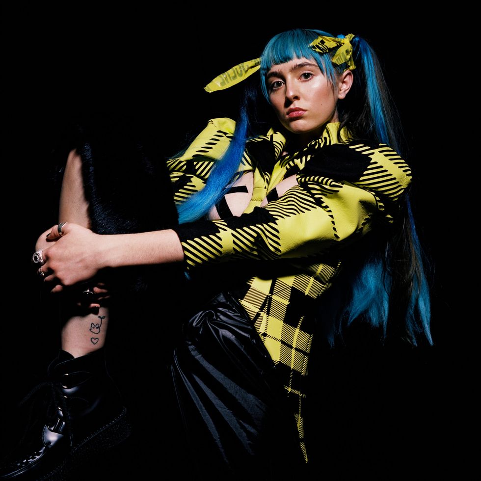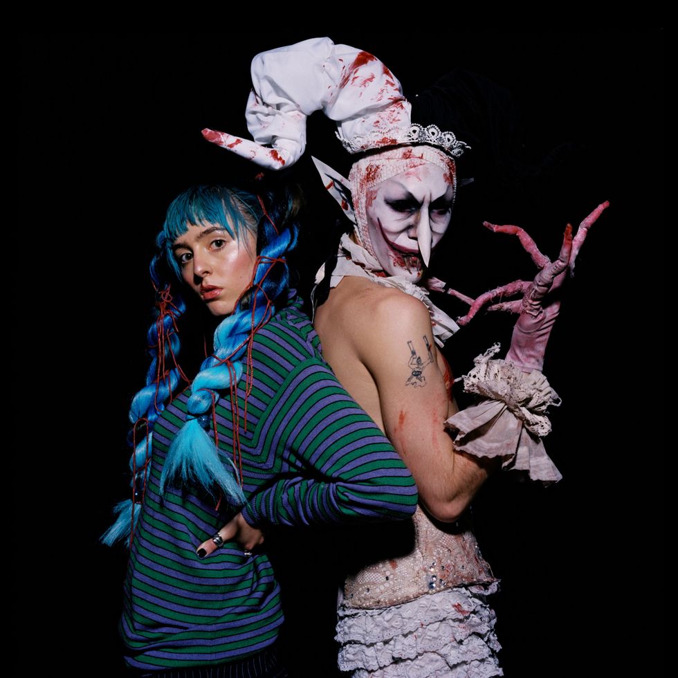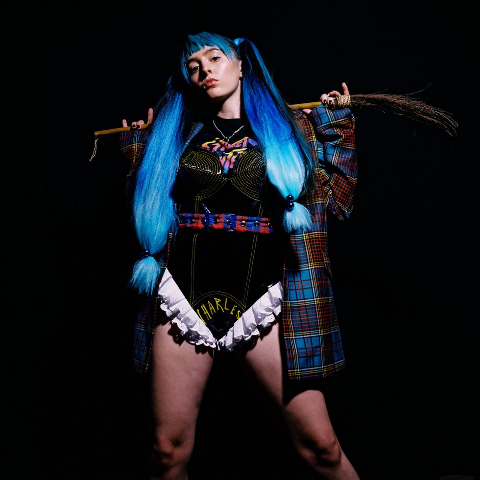 Accordingly, in the aqua-haired London artist's new video, which PAPER is premiering on this auspicious day, she wants you to be repulsed and enchanted at the same time. Like a horror-kink remake of 500 Days Of Summer, Ashnikko stars as a lascivious harajuku-goth manic pixie dream girl, bragging about her ass-eating, dude-ghosting and murdering prowess while she and her headless horseman boyfriend picnic, sip red wine, ride vintage bikes in the park and feed each other cake, until the storyline devolves into a sexy séance.