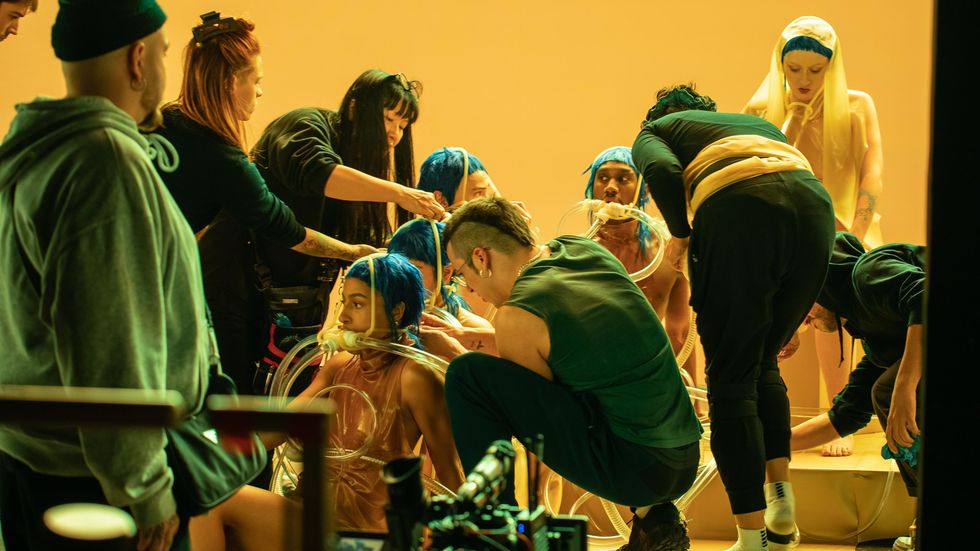 And just in case you weren't already thoroughly terrified, the single arrives alongside a music video that will leave you fully freaked out. Directed by Saam Farahmind, the visual feels like if H.R. Giger tried to produce a flashy big budget hip-hop music video, with Ashnikko cast as a latex-clad hive mother vomiting black sludge into the mouths of her disciples through an elaborate system of tubes spliced between bits of ass-shaking choreo.